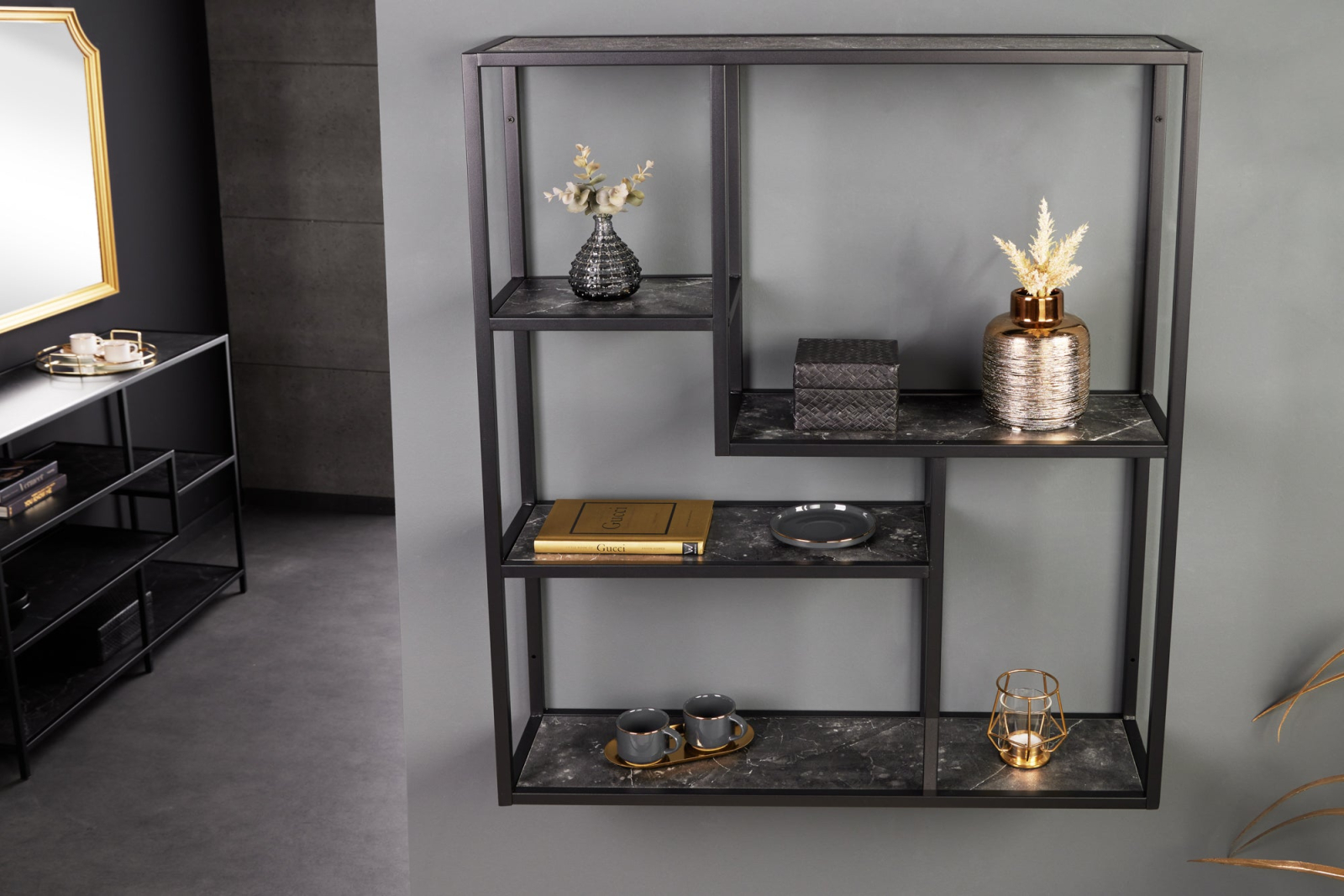 Raft pentru perete SLIM LINE cu aspect de marmura antracit, 75x90 cm