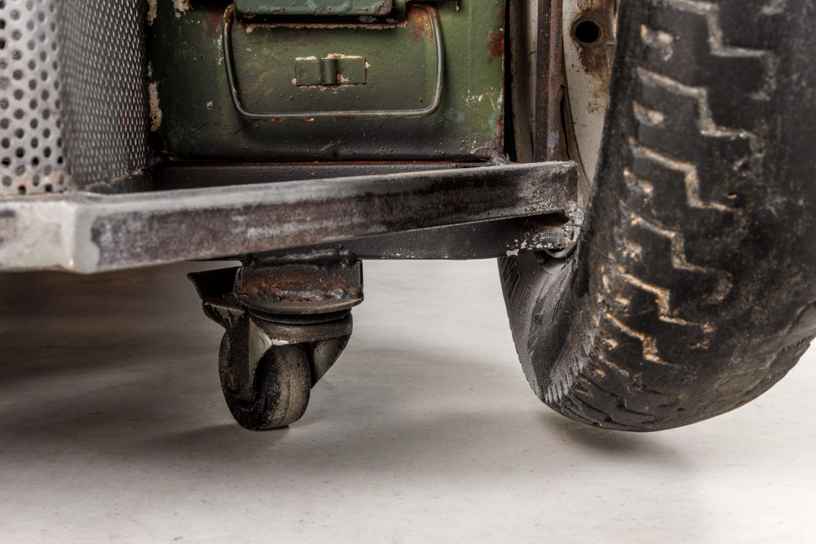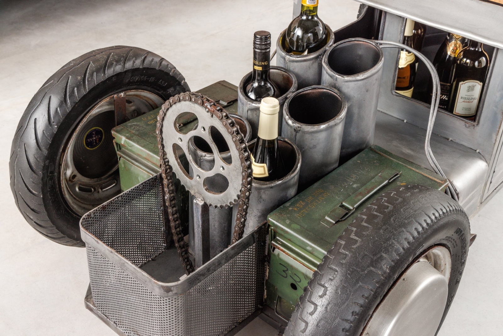 Visezi la o măsuță de cafea care atrage atenția? Atunci această măsuță extravagantă în stil hot rod este exact ceea ce cauți! Cu anvelopele sale naturale și designul autentic, este o adevărată atracție în casa ta. În interiorul mesei se află mai multe compartimente de depozitare, perfecte pentru reviste, telecomenzi sau alte obiecte mici. Cele două uși se deschid, permițându-ți să folosești masa ca bar de acasă. Această măsuță de cafea nu este doar un must-have pentru fanii mașinilor clasice, ci și pentru oricine dorește să-și îmbunătățească casa cu o piesă de mobilier unică.