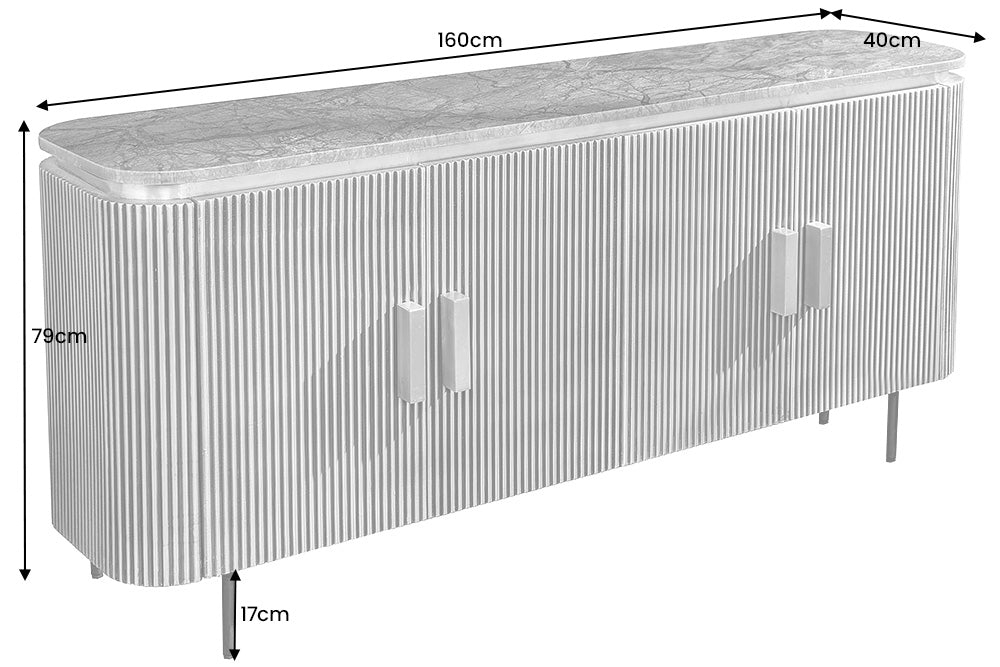 Dar designul bufetului nu este singurul punct forte. Deschideți ușile și descoperiți un spațiu amplu de depozitare în interior. Aici puteți depozita cu grijă toate articolele de uz casnic. Fie că este vorba de porțelanuri, pahare, cărți sau accesorii - acest bufet poate fi folosit în nenumărate moduri. Sfatul nostru: Combinați bufetul cu alte piese de mobilier și accesorii din alamă pentru a crea cu ușurință un aspect general armonios în spațiul dvs. de locuit.