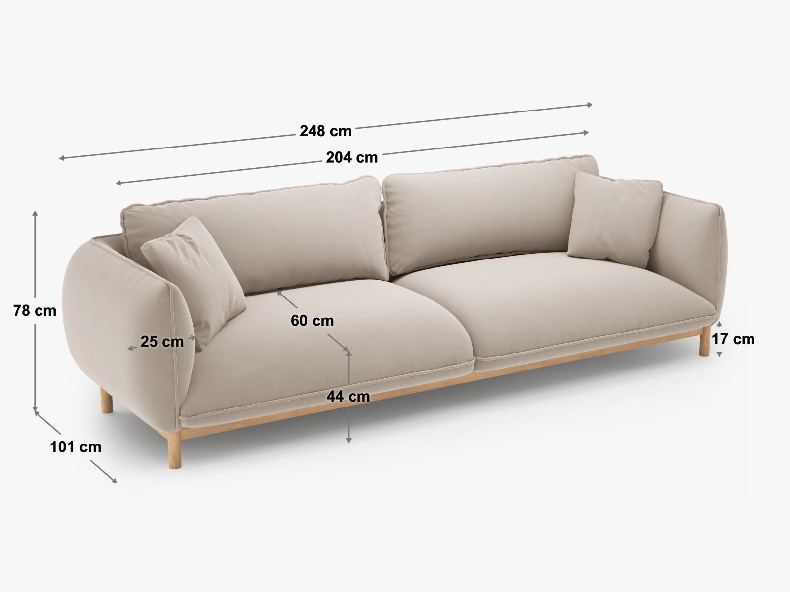 Cu 4 locuri: lungime 248 cm/lățime 101 cm/inălțime 78 cm