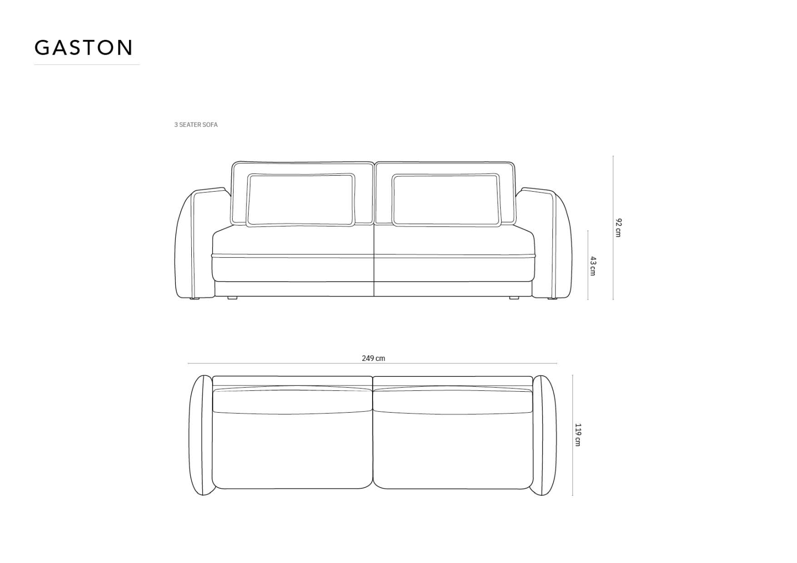 lungime 249 cm/lățime 119 cm/inălțime 92 cm