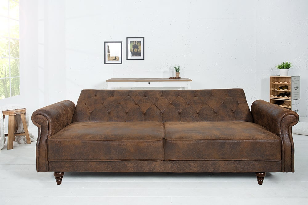 Pentru un interior deosebit, am selectat pentru tine această canapea extesibilă. Spătarul tapițat a fost finisat cu cusături decorative care amintesc de faimosul design Chesterfield. Țesătura de tapițerie cu aspectul său este deosebit de impresionantă și, de asemenea, impresionează prin senzația plăcută și moale. Nu vei mai vrea să te ridici de pe ea! Picioarele întunecate din lemn masiv turnat îmbunătățesc cu pricepere aspectul canapelei. Punctul culminant, însă, este dezvăluit doar la a doua vedere.