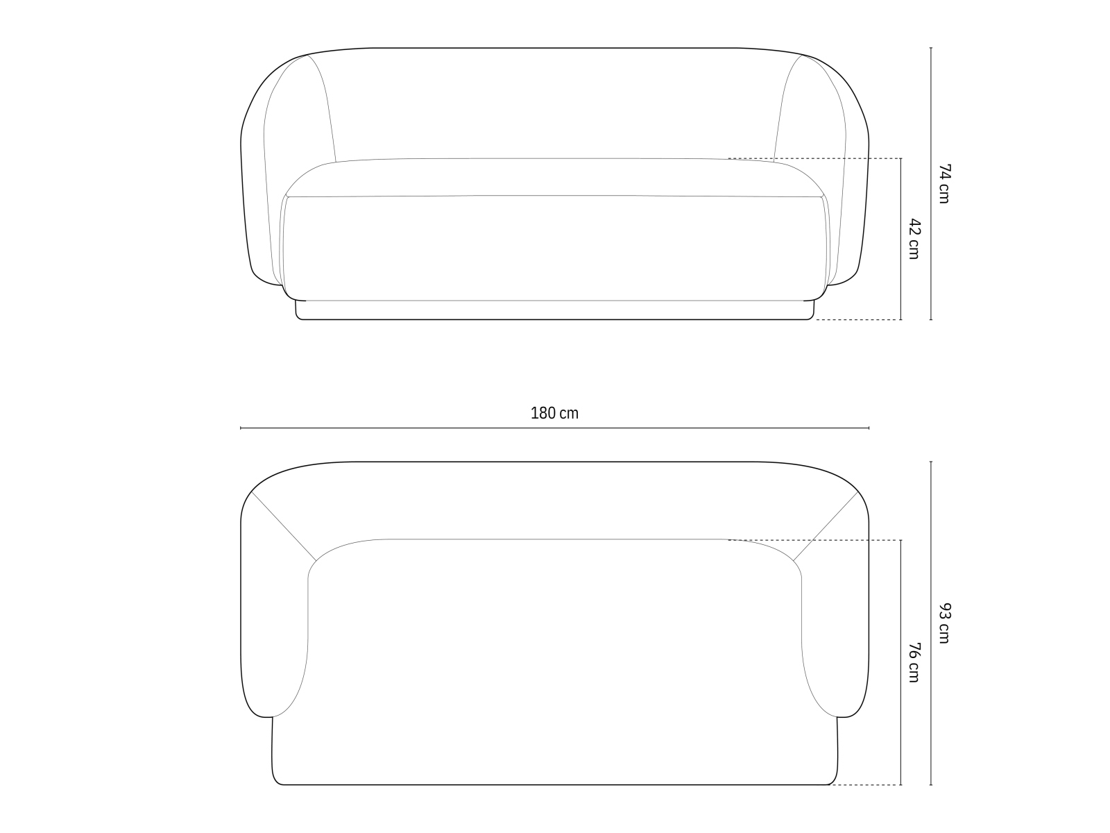 lungime 180 cm/lățime 93 cm/inălțime 74 cm