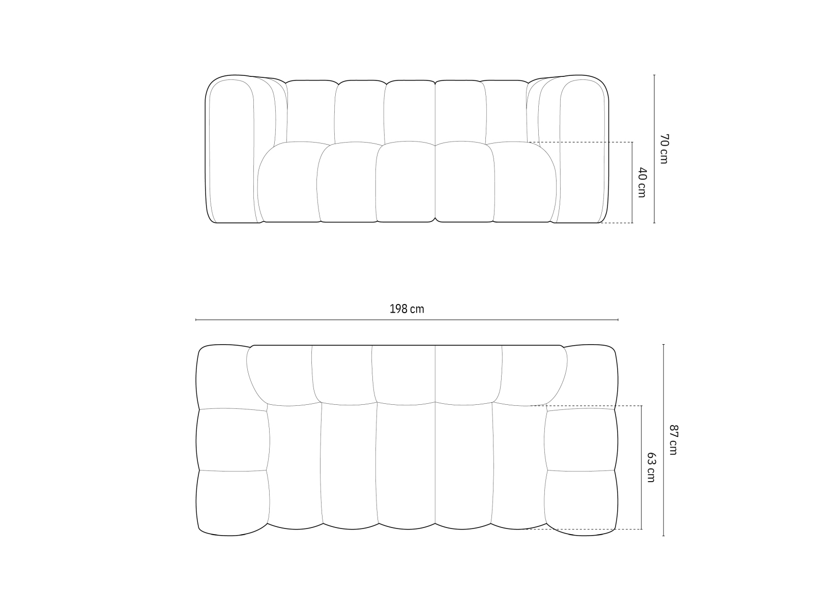 Cu 2 locuri: lungime 198 cm/lățime 87 cm/inălțime 70 cm