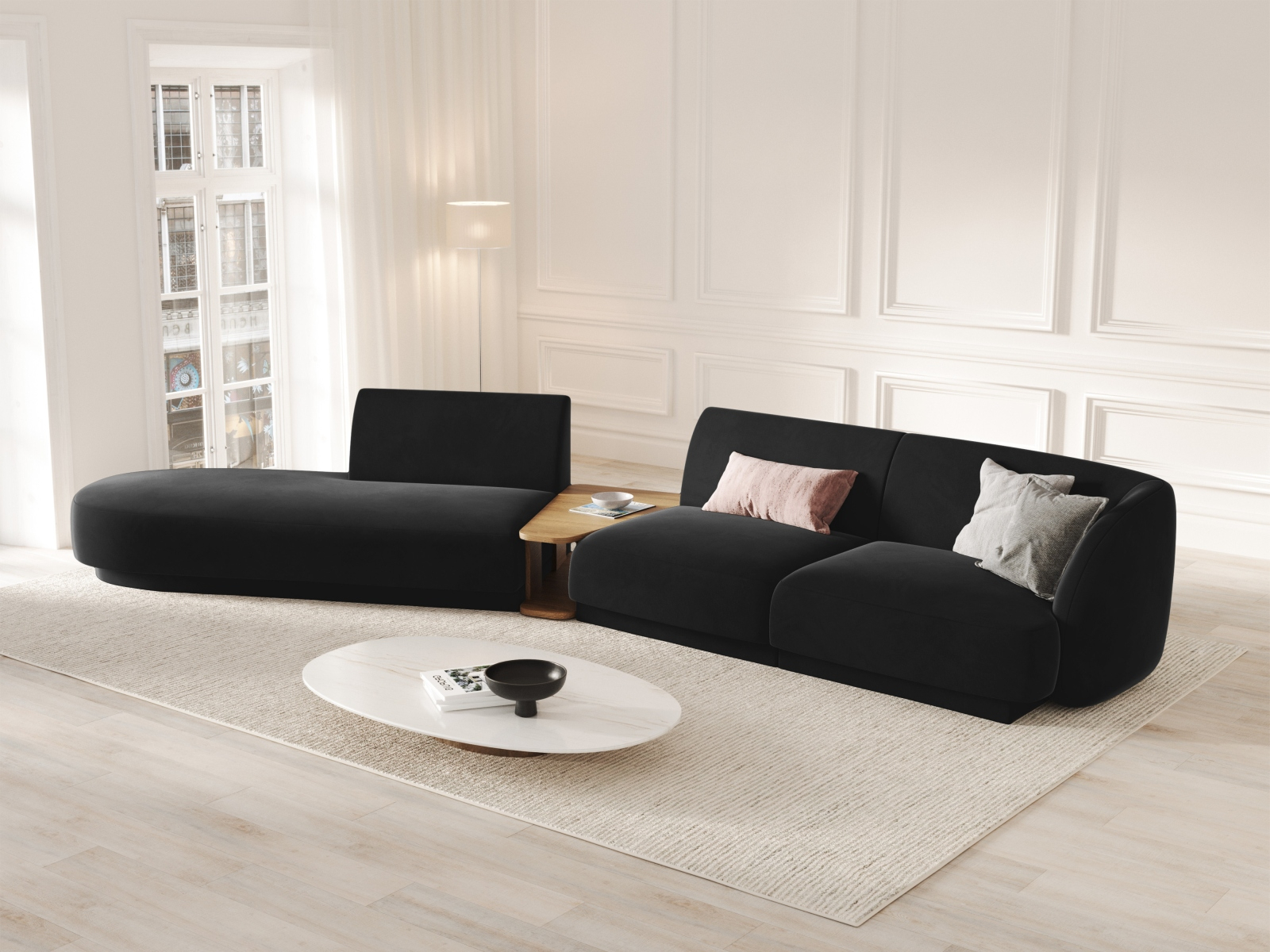 Canapea modulara Miley cu tapiterie din catifea si colt pe partea stanga, negru