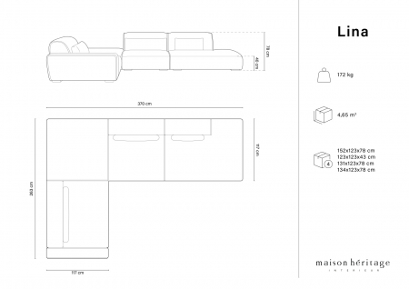 lungime 370 cm/lățime 263 cm/inălțime 78 cm