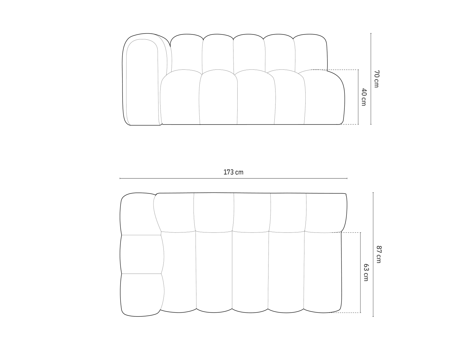 lungime 173 cm/lățime 87 cm/inălțime 70 cm