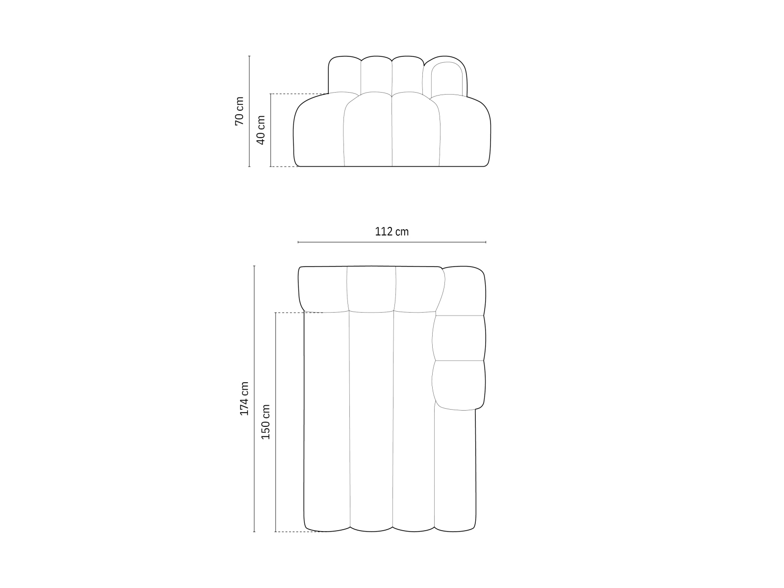 lungime 174 cm/lățime 112 cm/inălțime 70 cm