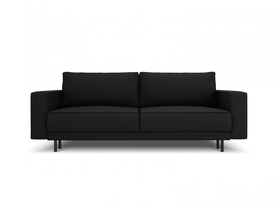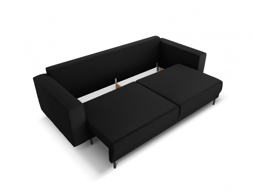 Structură din lemn masiv de pin, PAL, plăci din fibră, placaj, arcuri ondulate, picioare din metal negru