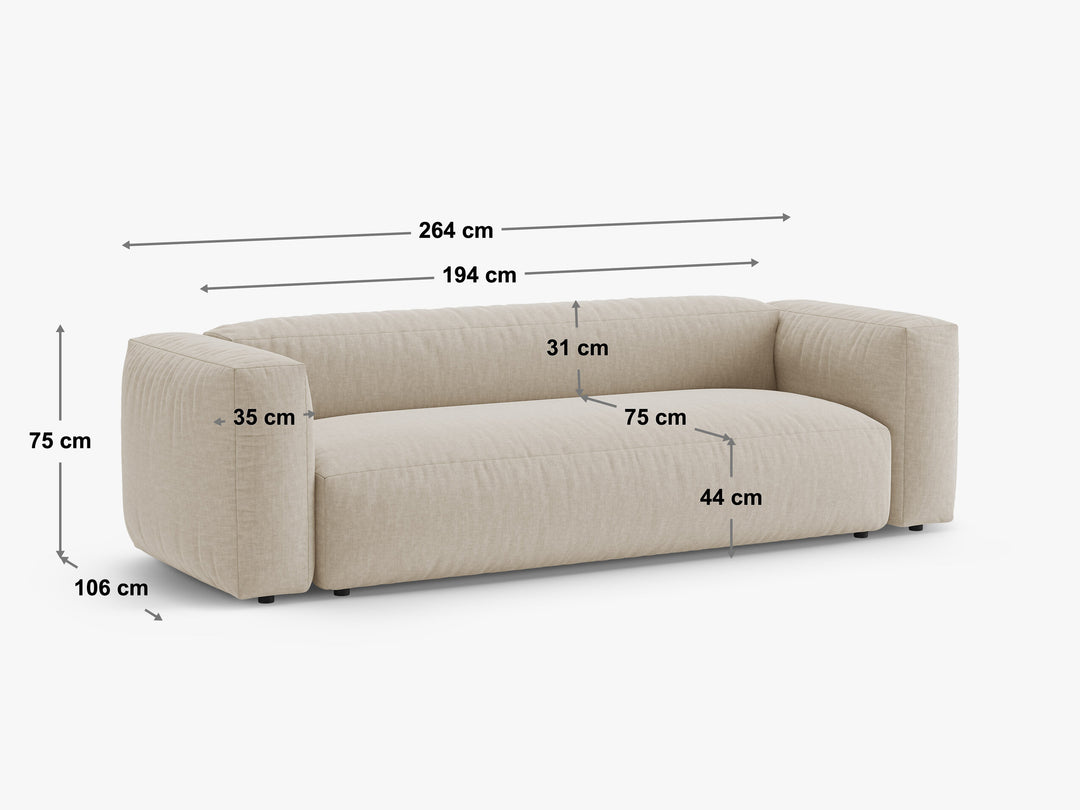lungime 264 cm/lățime 106 cm/inălțime 75 cm