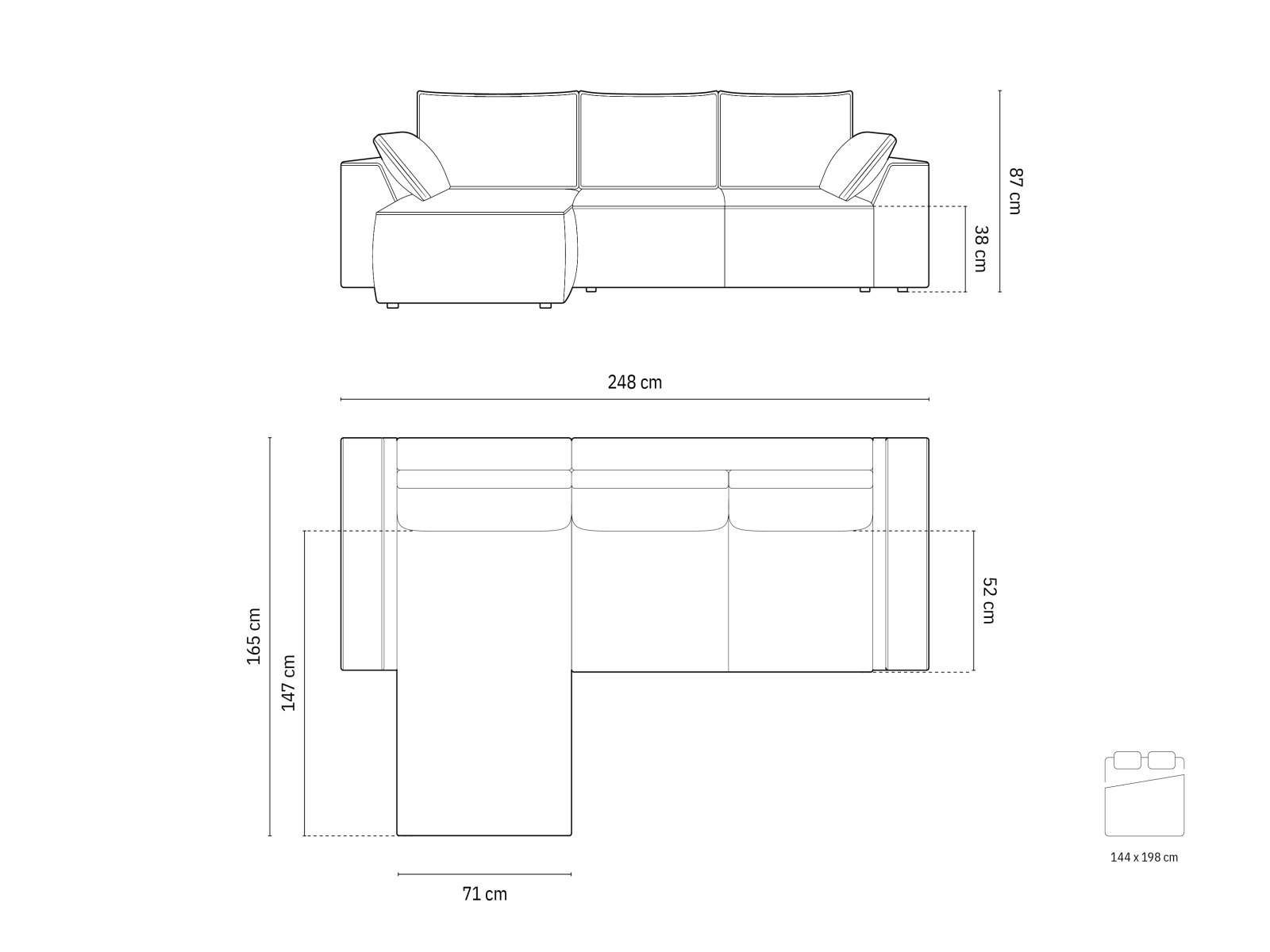 lungime 248 cm/lățime 165 cm/inălțime 87 cm