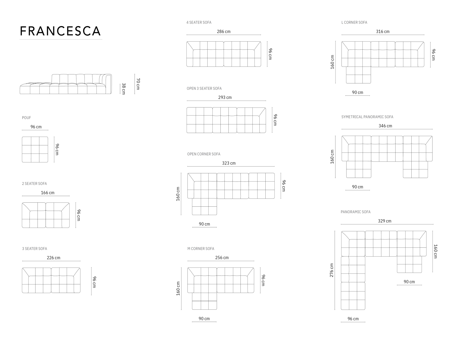 lungime 226 cm/lățime 96 cm/inălțime 70 cm