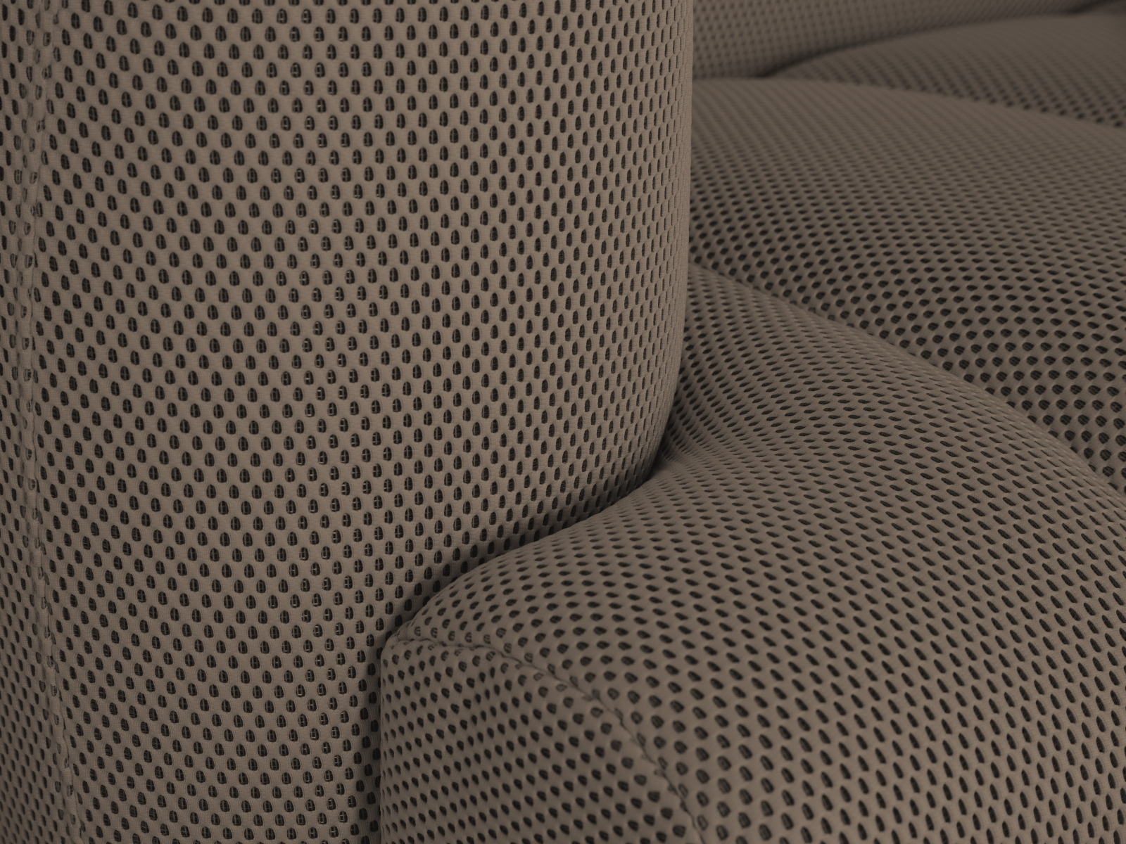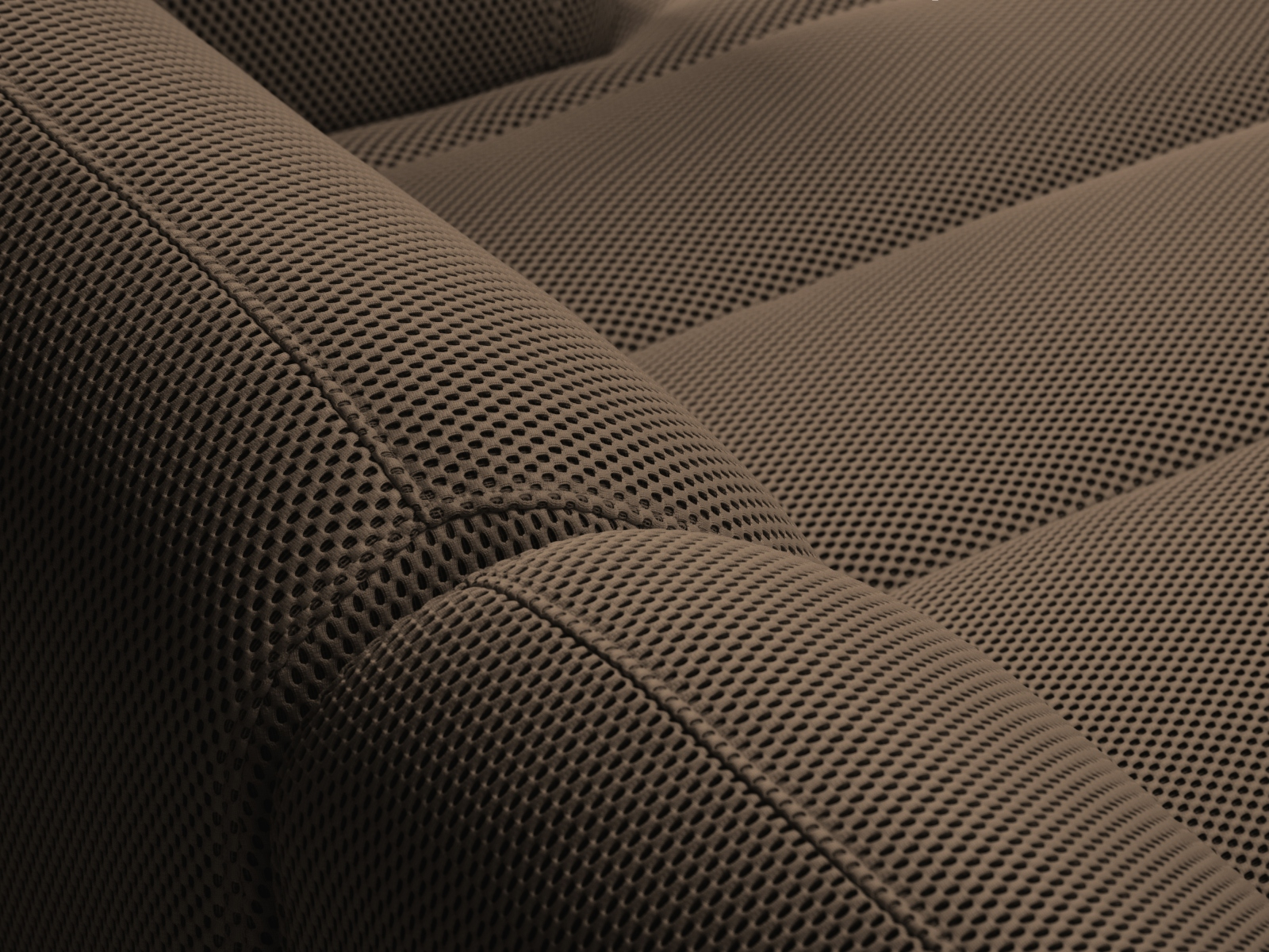 Datorită aspectului său uimitor, Sonic este o țesătură unică, perfectă pentru tapițerie. Prezintă o suprafață tridimensională și un design ultramodern care este deosebit de impresionant. Materialul are o textură bogată de găuri mici, distanțate în mod regulat, care seamănă cu un fagure, dându-i un aspect unic și atrăgător.