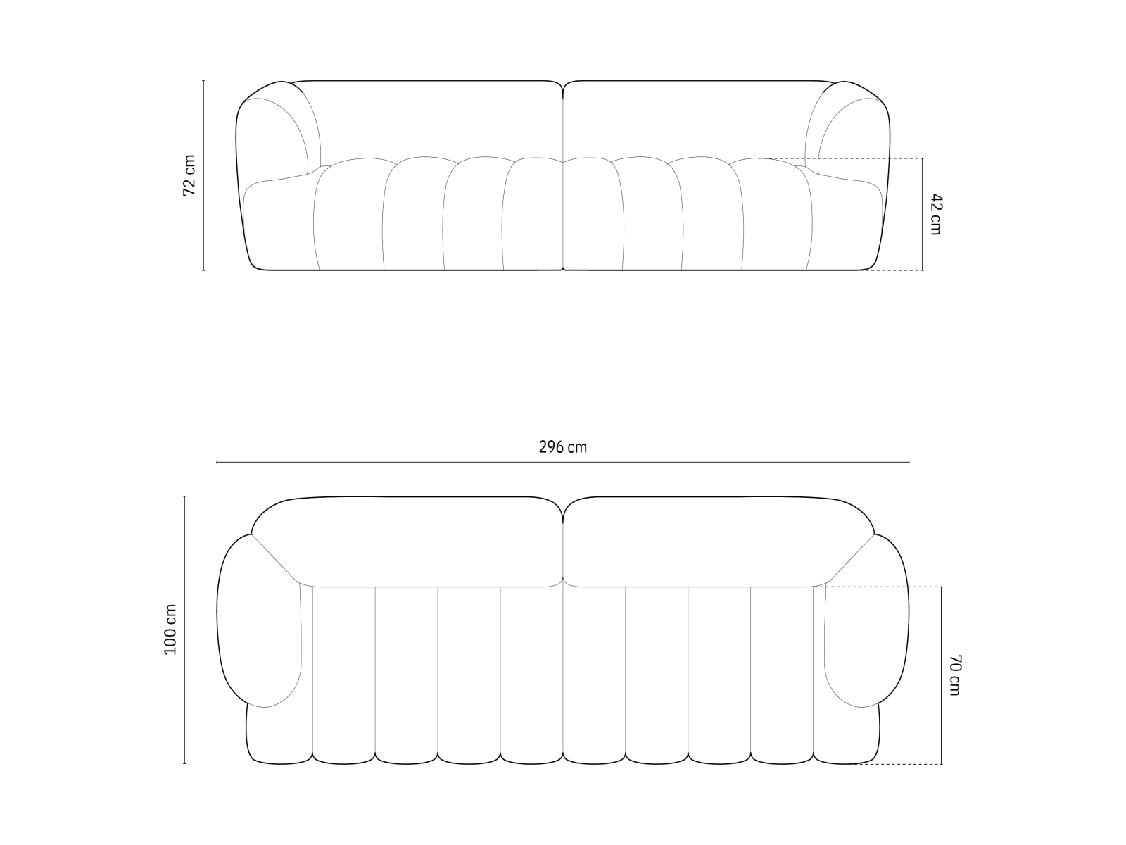 lungime 296 cm/lățime 100 cm/inălțime 72 cm