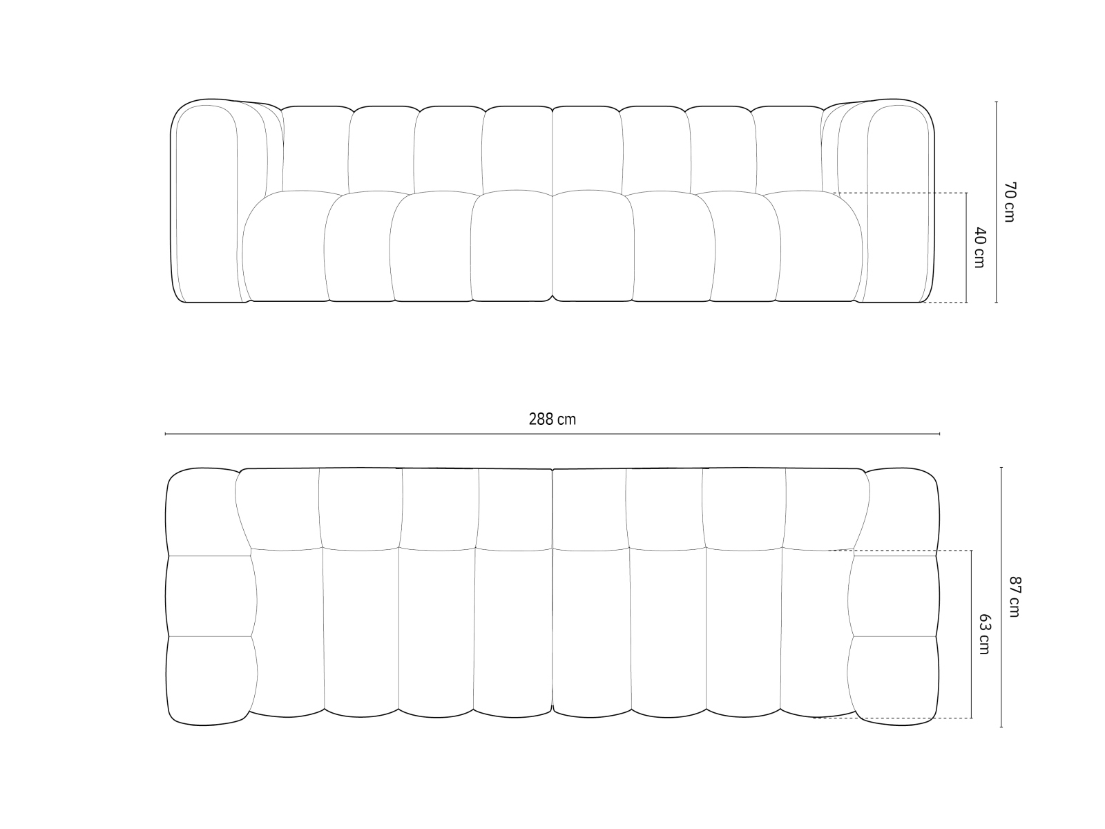 Cu 4 locuri: lungime 288 cm/lățime 87 cm/inălțime 70 cm