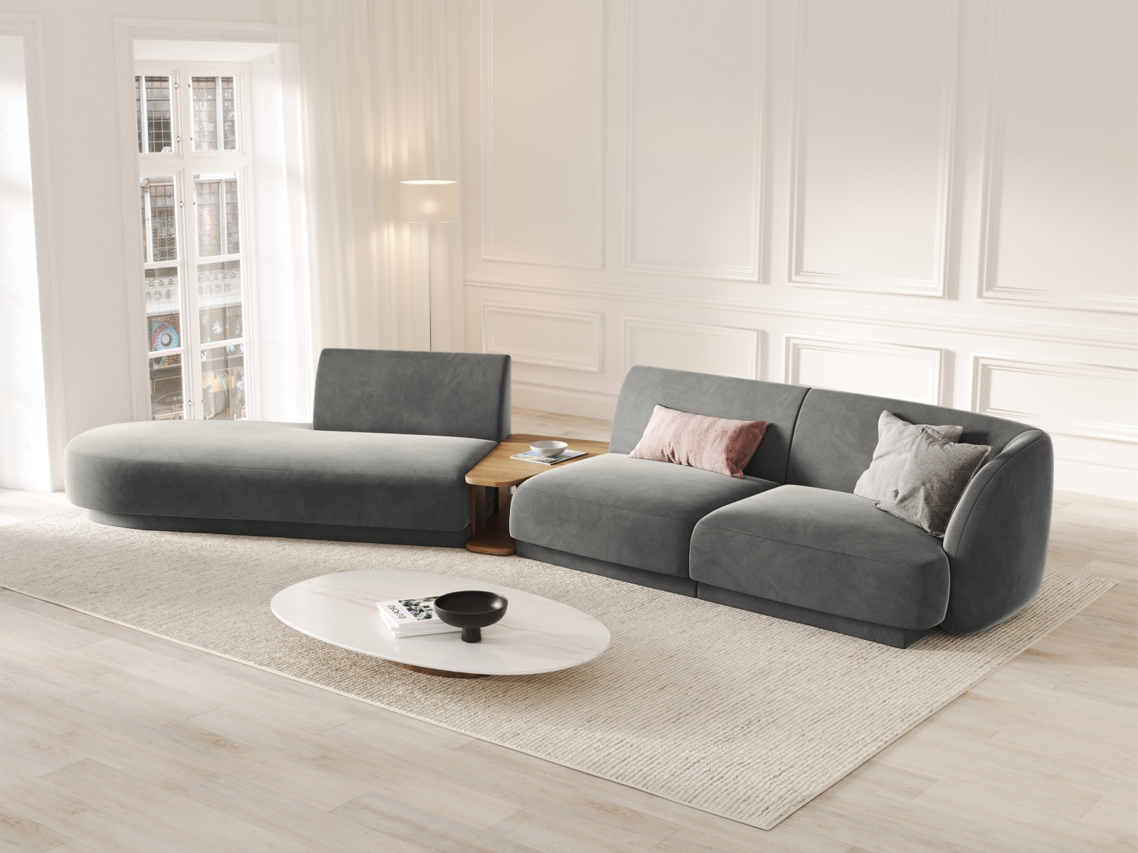 Canapea modulara Miley cu tapiterie din catifea si colt pe partea stanga, gri deschis