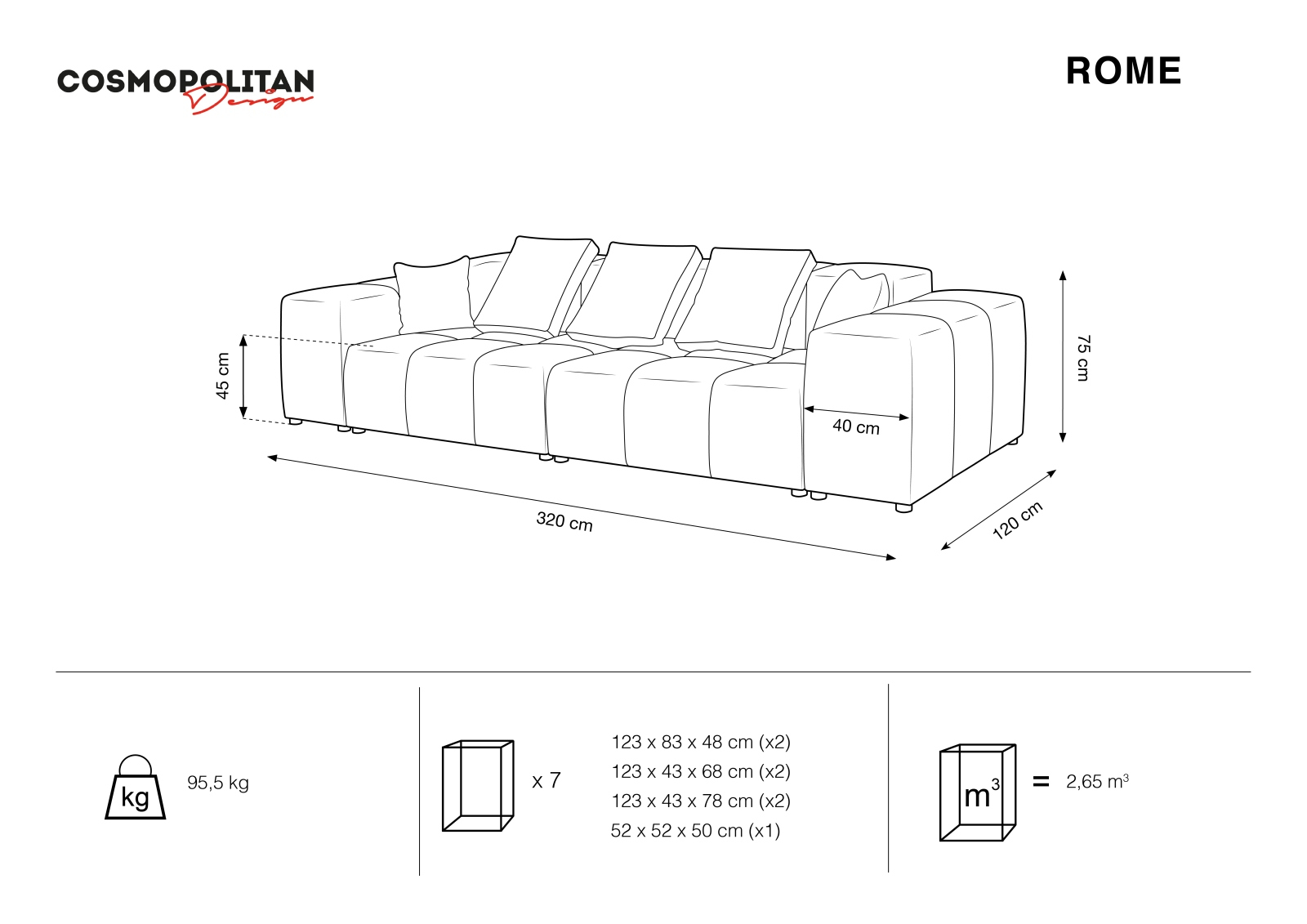 lungime 320 cm/lățime 120 cm/inălțime 75 cm