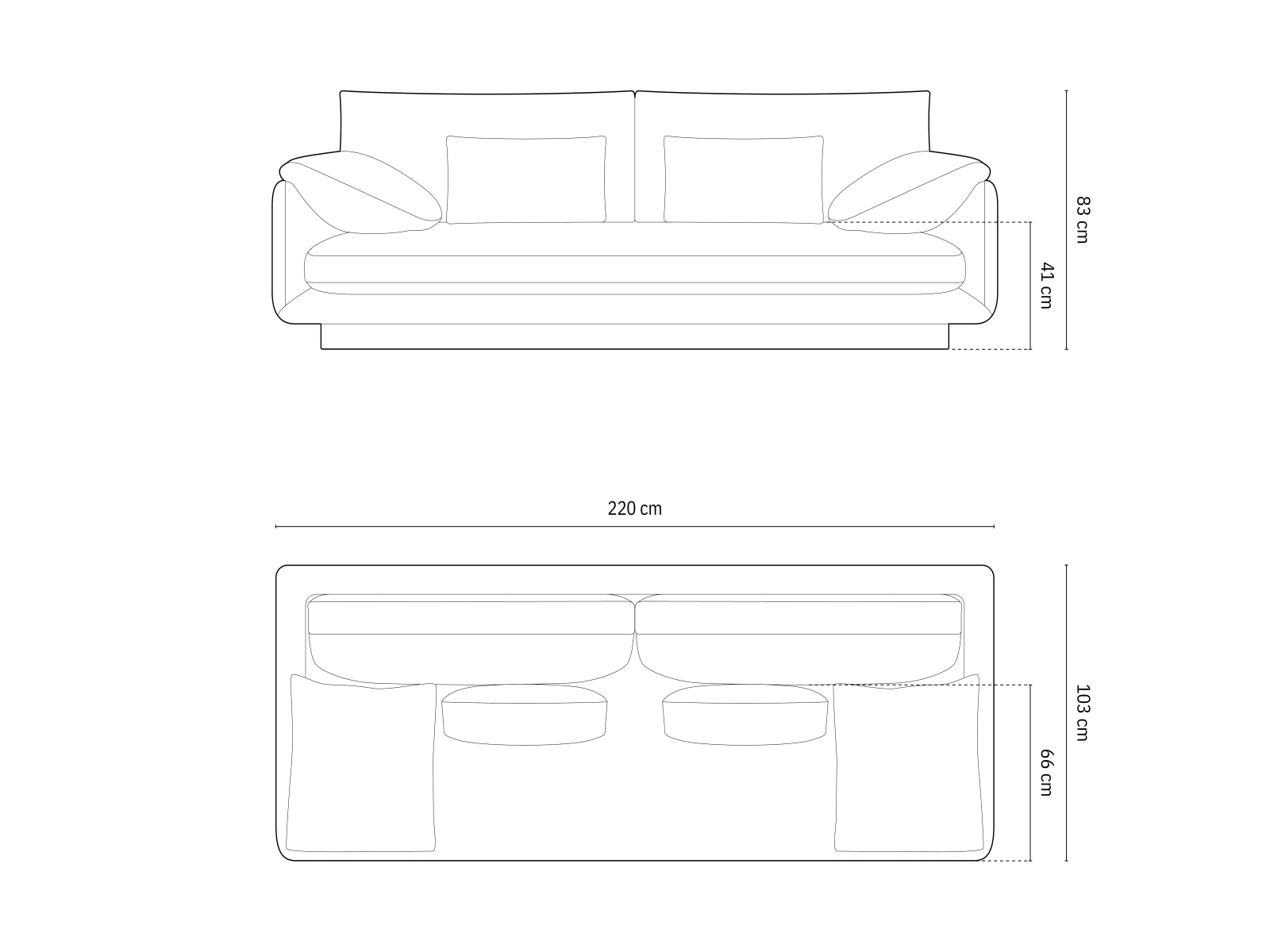 Cu 3 locuri: lungime 22 cm/lățime 103 cm/inălțime 83 cm