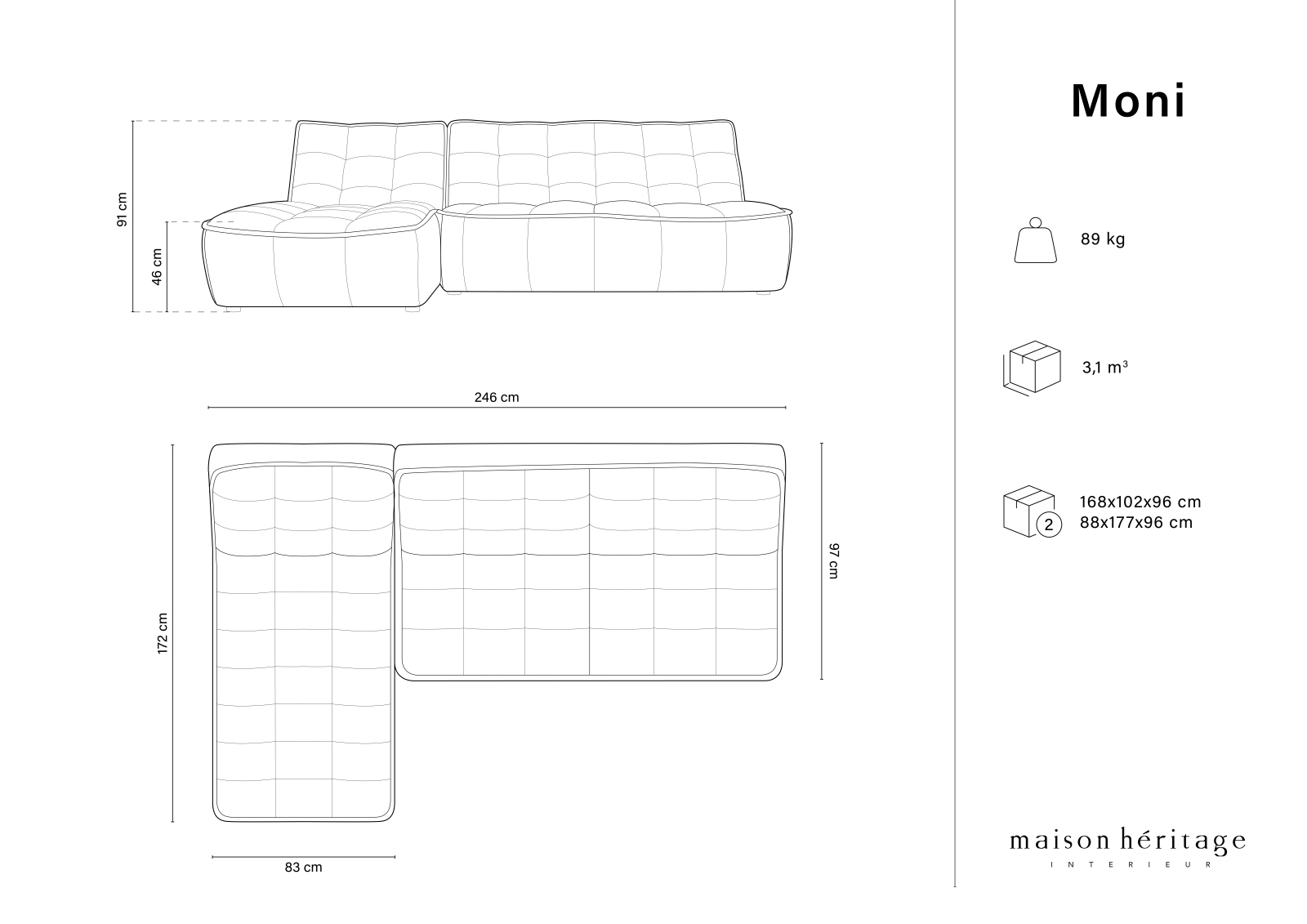lungime 246 cm/lățime 172 cm/inălțime 91 cm