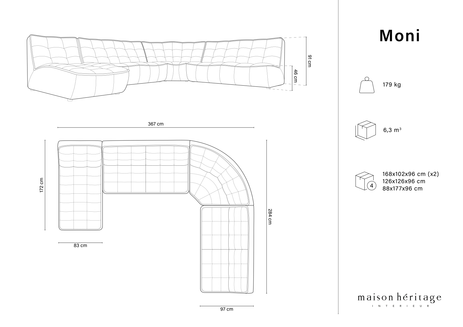 Coltar Moni cu 8 locuri in forma de U, colt pe partea dreapta si tapiterie din tesatura structurala