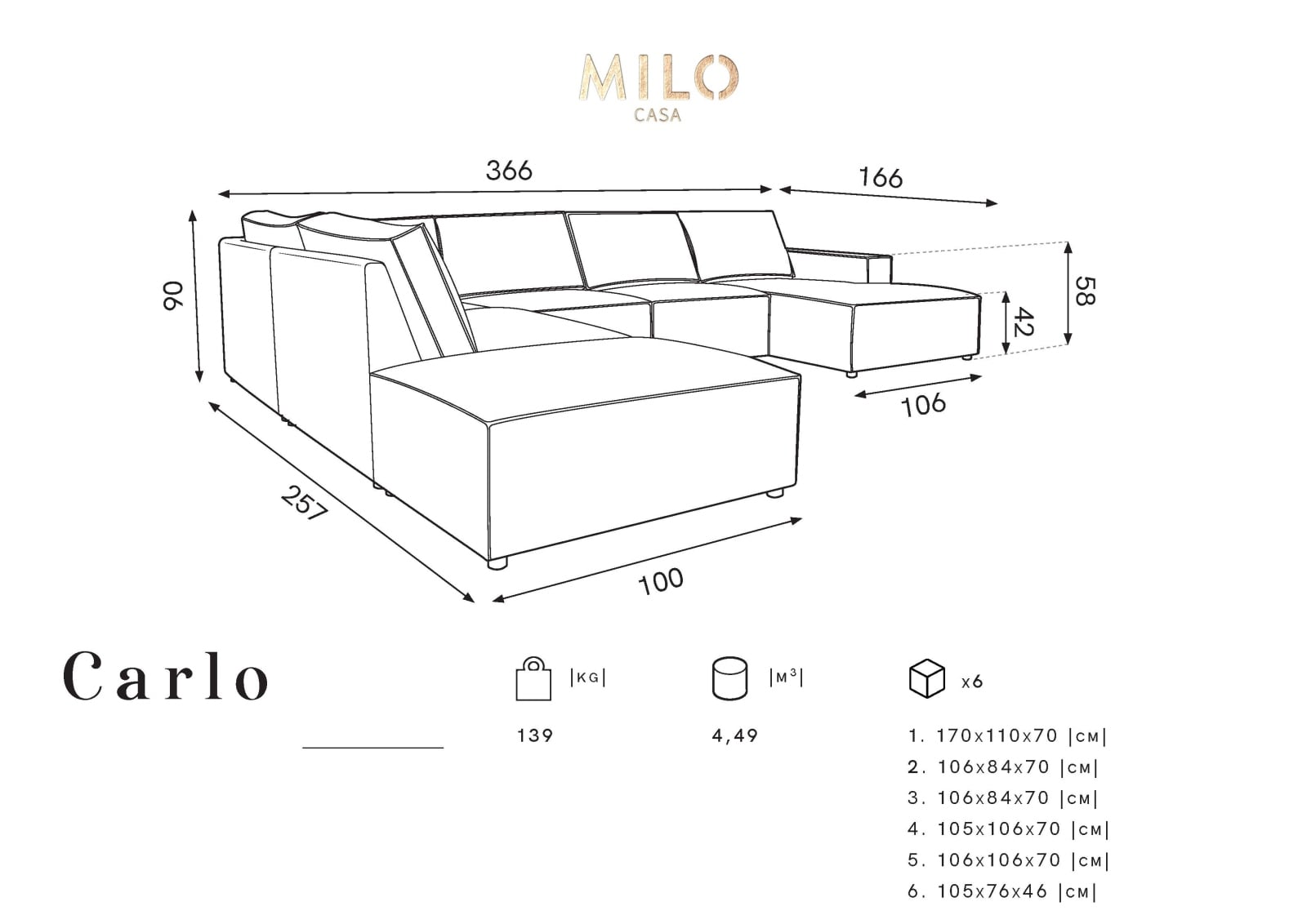 Colțar în formă de U Carlo cu tapițerie din catifea