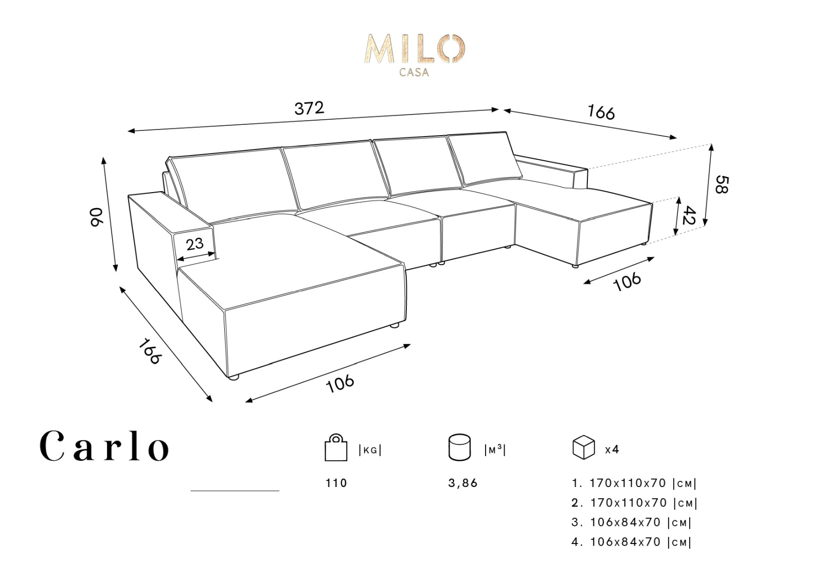 Colțar în formă de U Carlo cu tapițerie din catifea