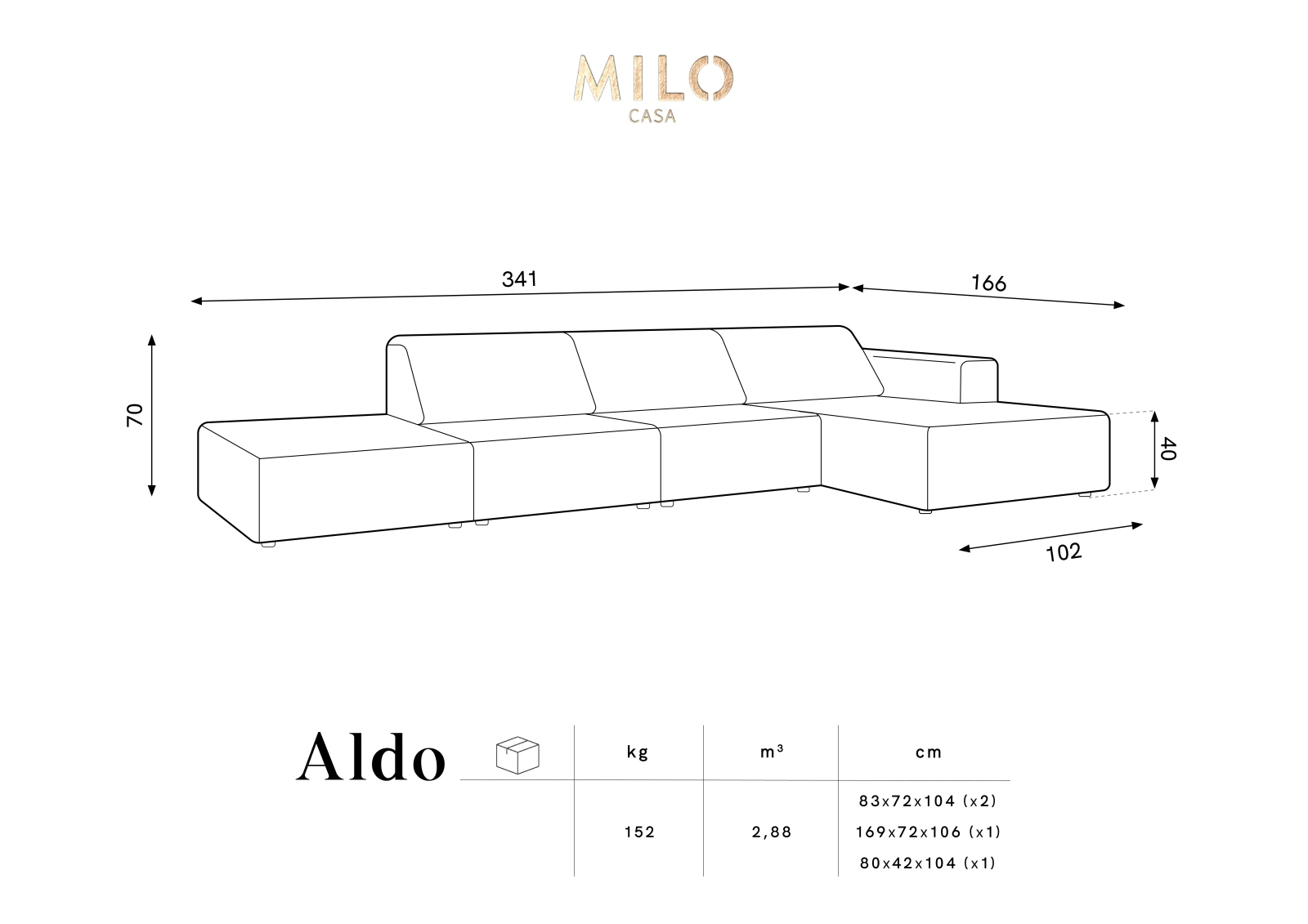 lungime 341 cm/lățime 166 cm/inălțime 70 cm