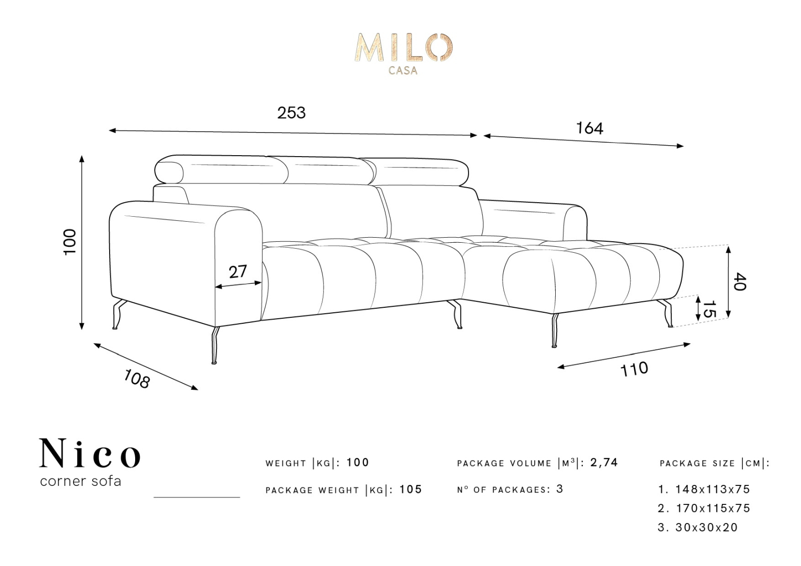 Coltar Nico cu tapiterie din catifea si tetiere reglabile
