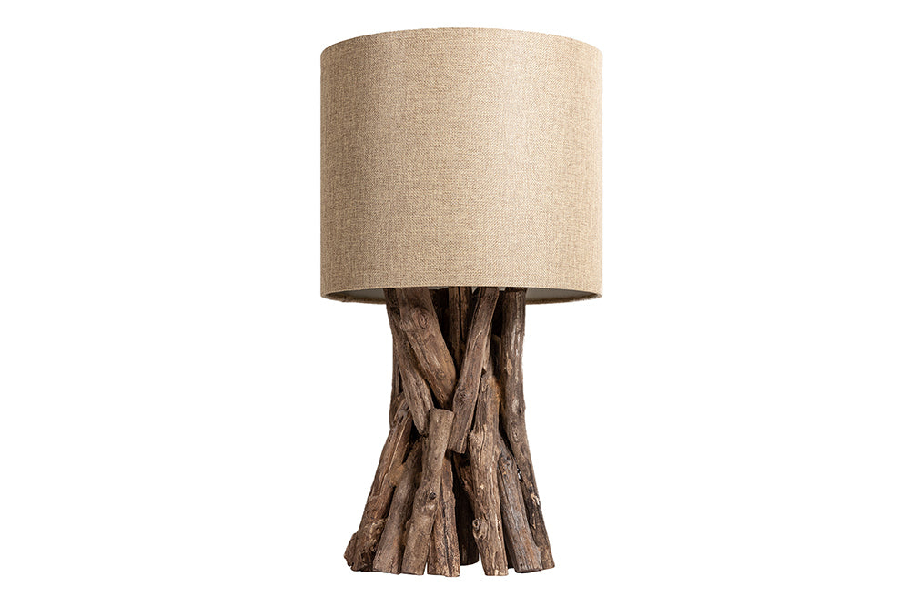Lampă de masă HARMONY NATURE 50cm din lemn de tec cu abajur bej