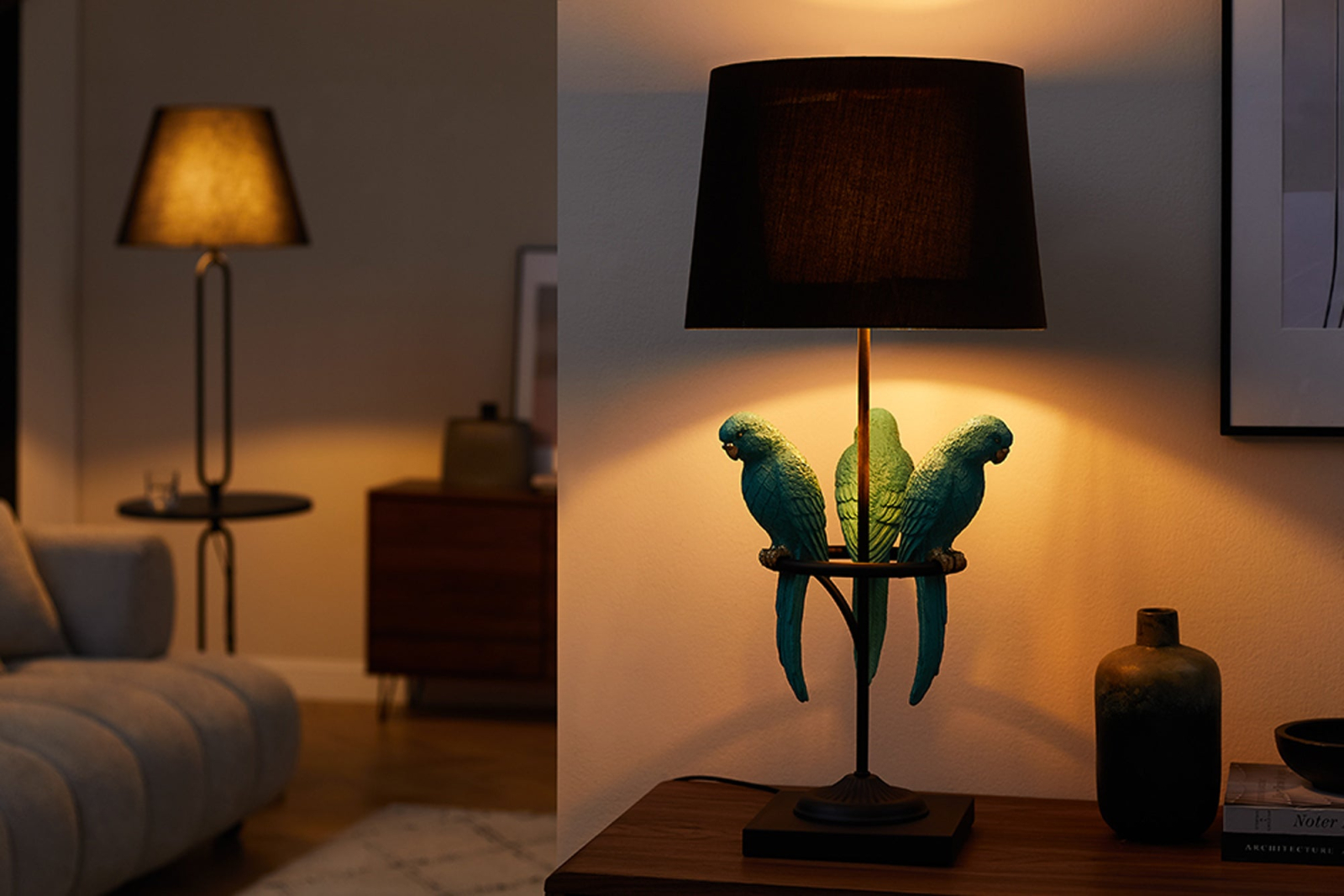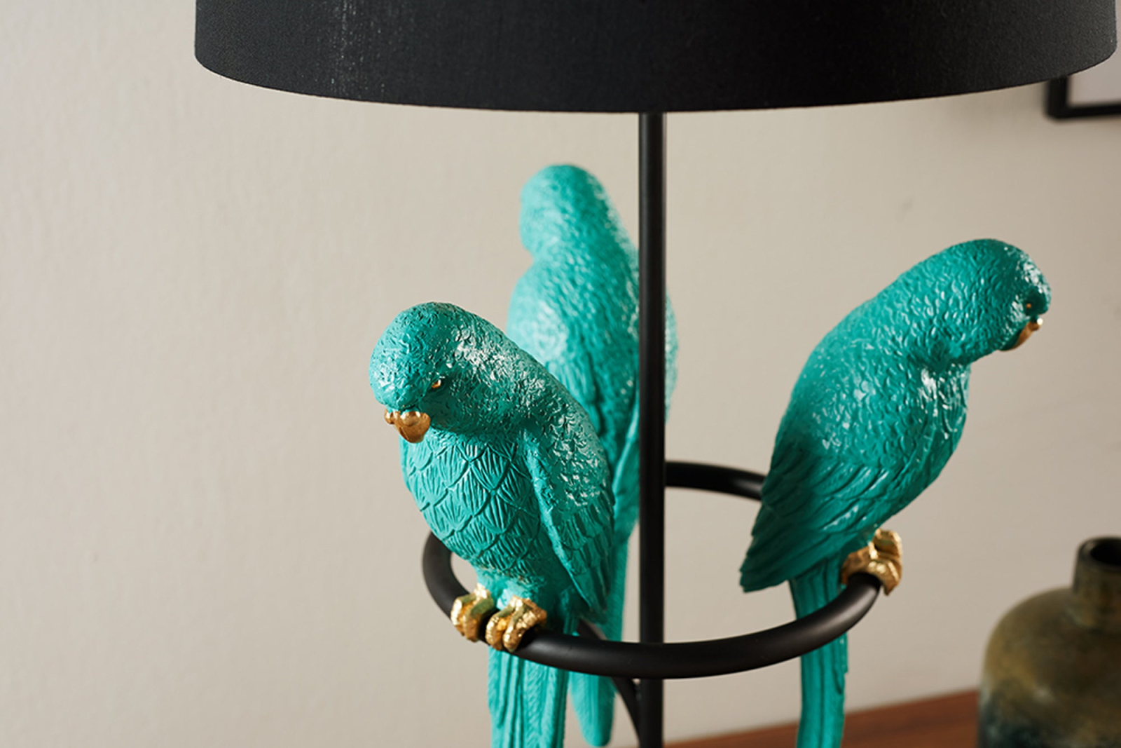 Lampă de masă WILDLIFE 75cm cu papagali verzi din polirășină