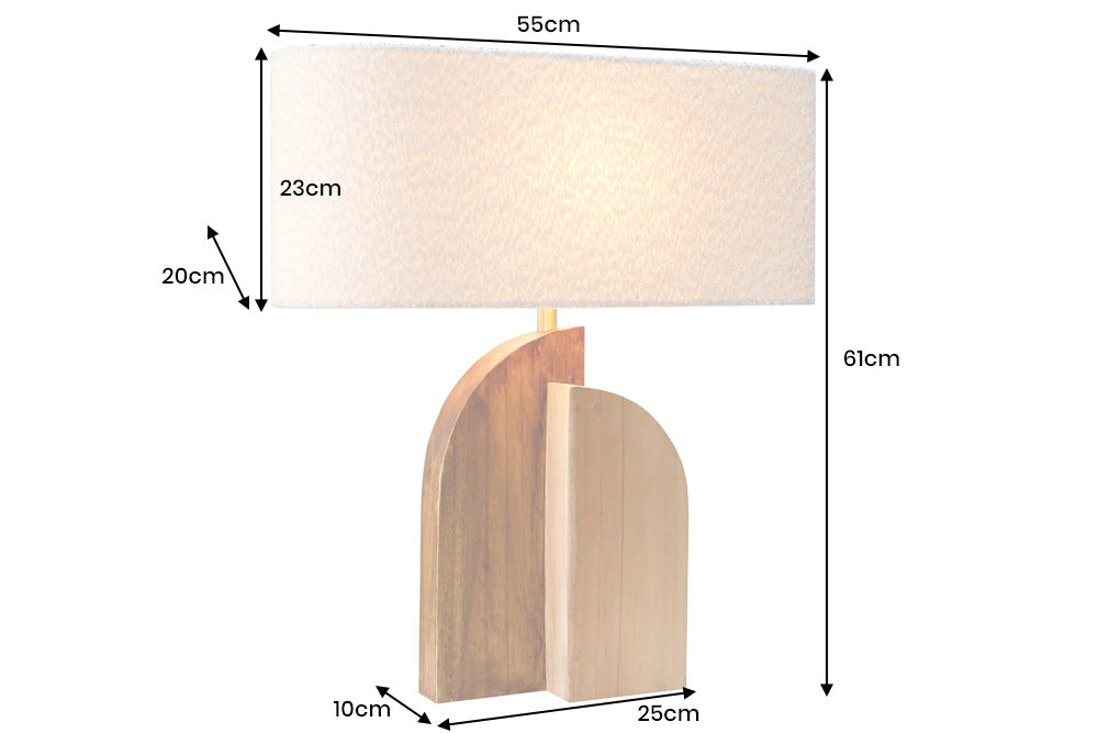 Lampă de masă LOVERS 60cm din lemn natural de raintree, cu abajur alb bouclé