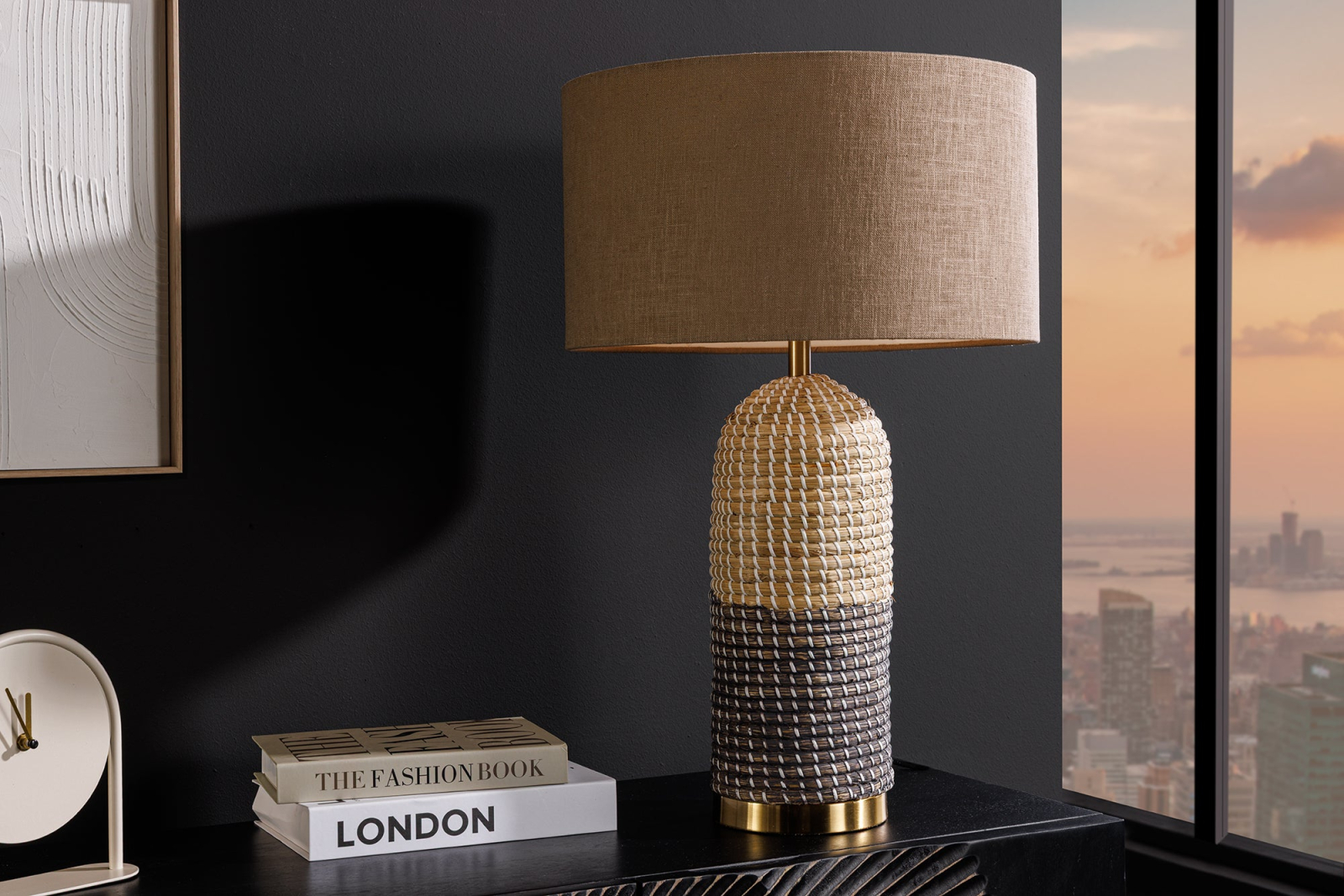 Lampă de masă ZEA 60cm ,iarbă de mare gradient auriu natural maro, cu abajur maro