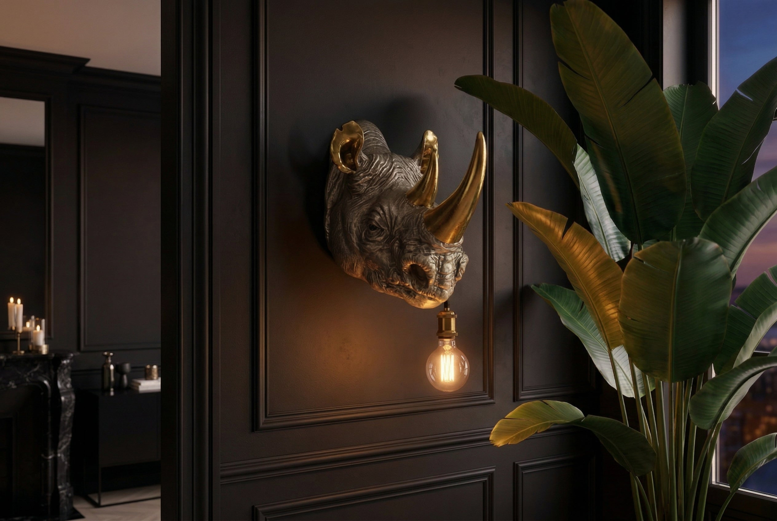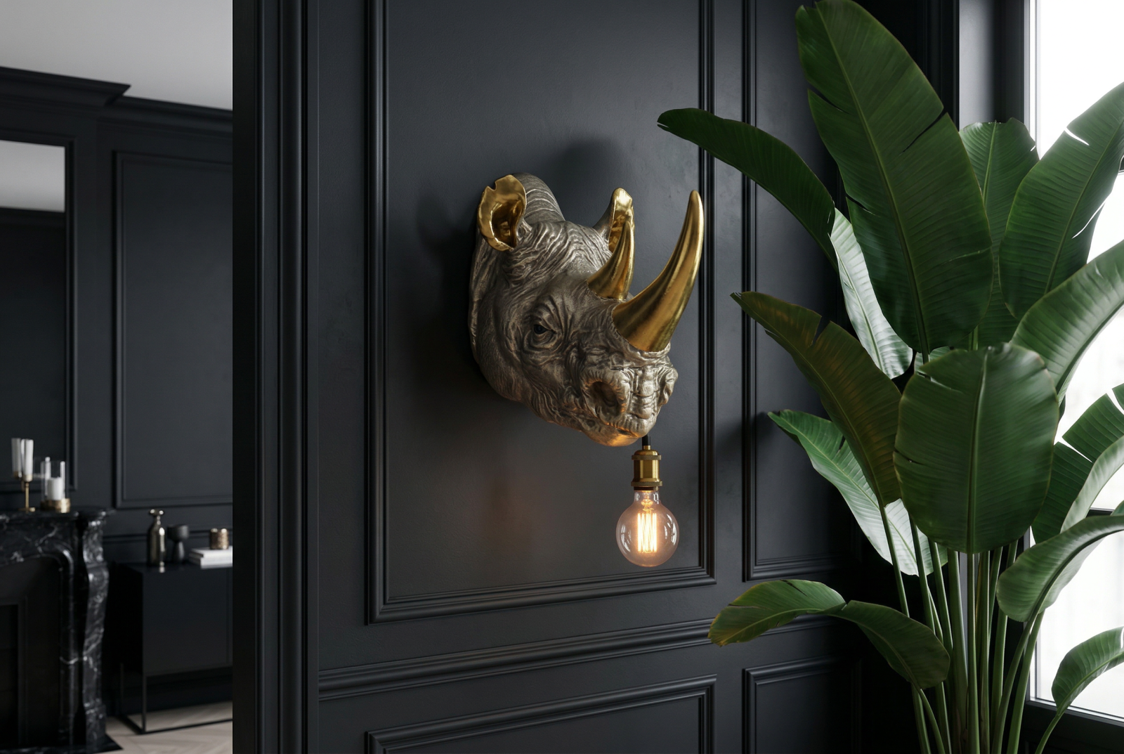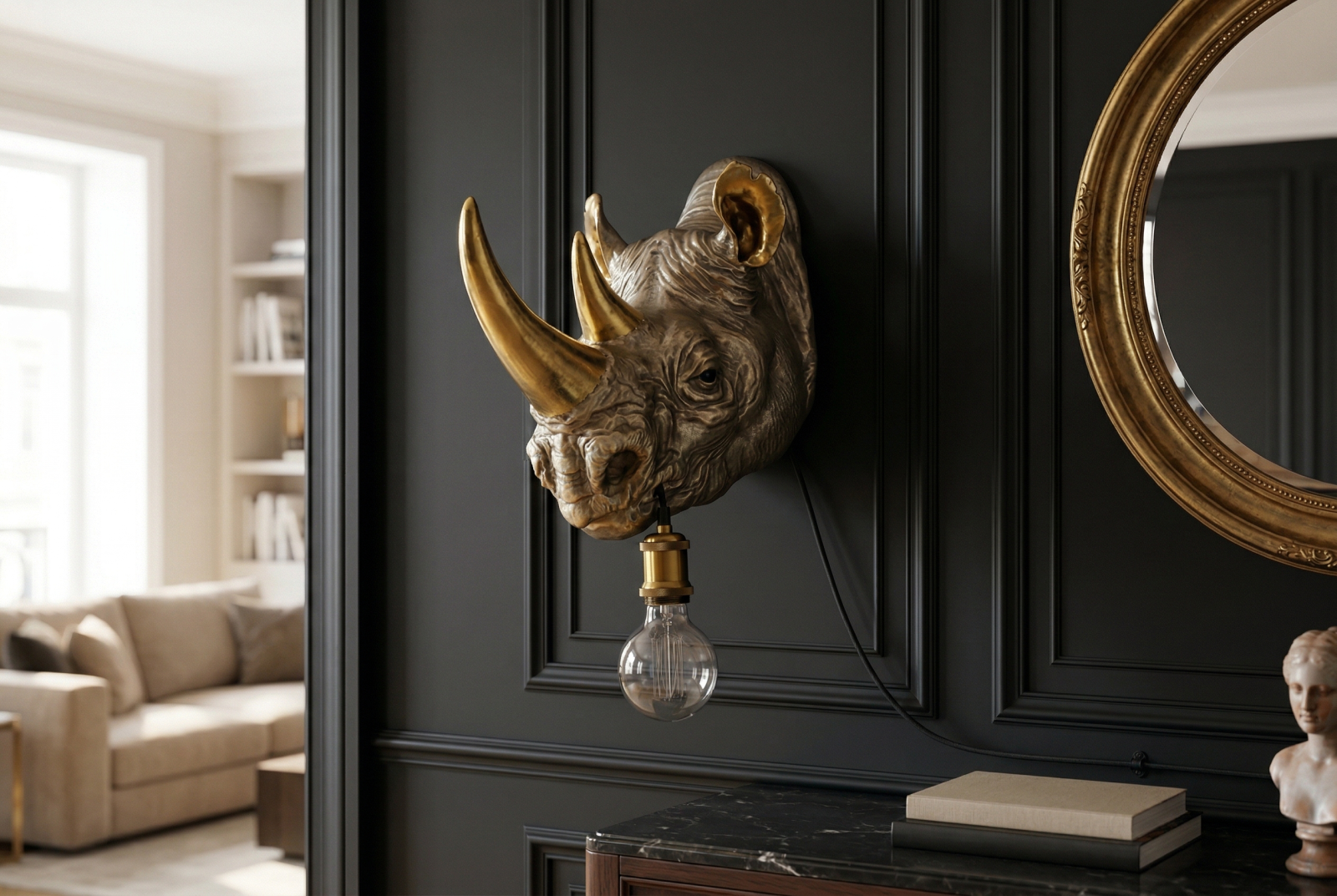 Lampă de perete aurie RHINO 40cm sculptură de rinocer ,lucrată manual