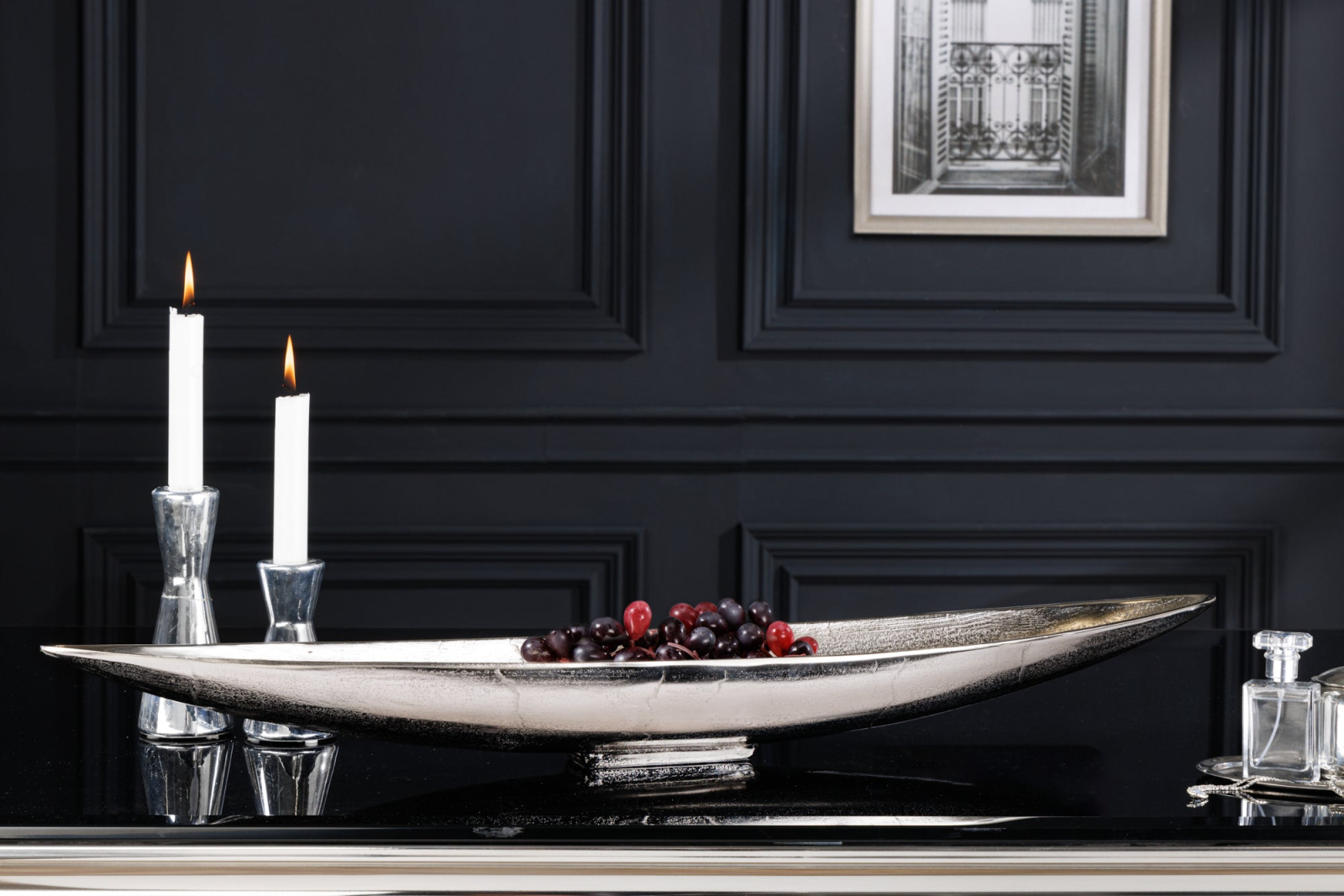 Bol decorativ SILVER LEAF 80 cm, aluminiu argintiu antic