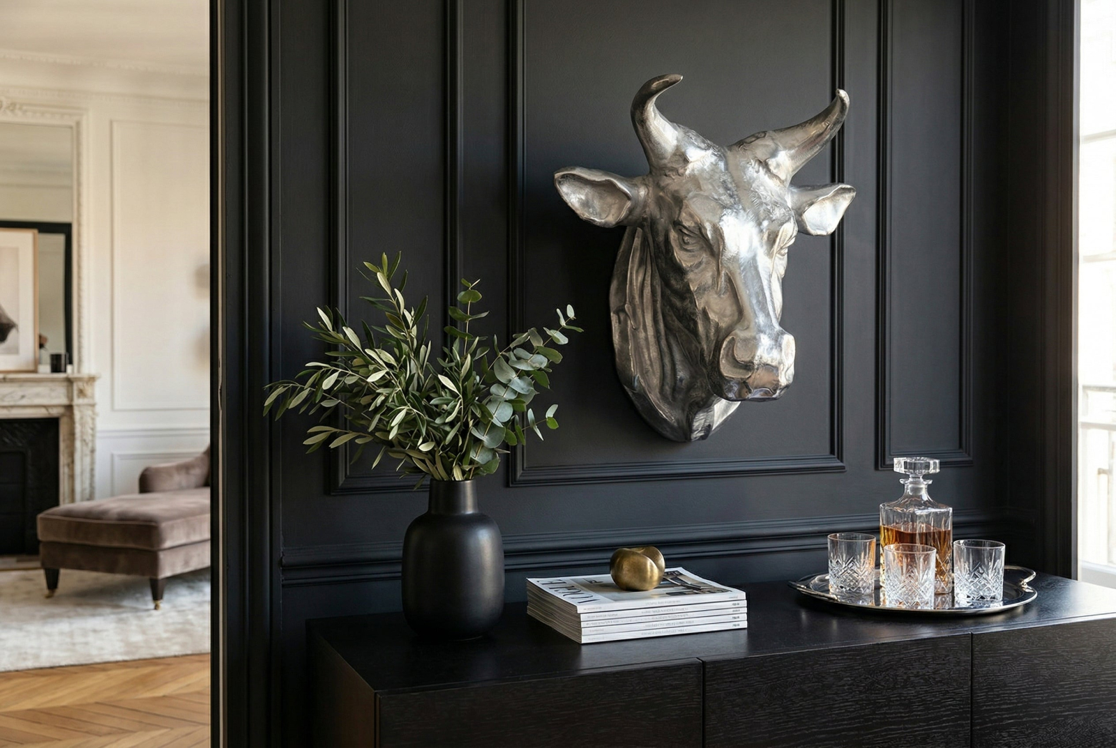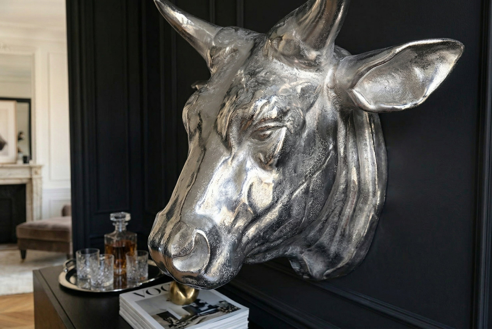 Decorațiune de perete cap de taur TORERO 65 cm argintiu