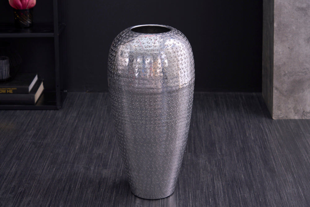 Vază ORIENTAL 50 cm cu efect de lovituri de ciocan argintiu