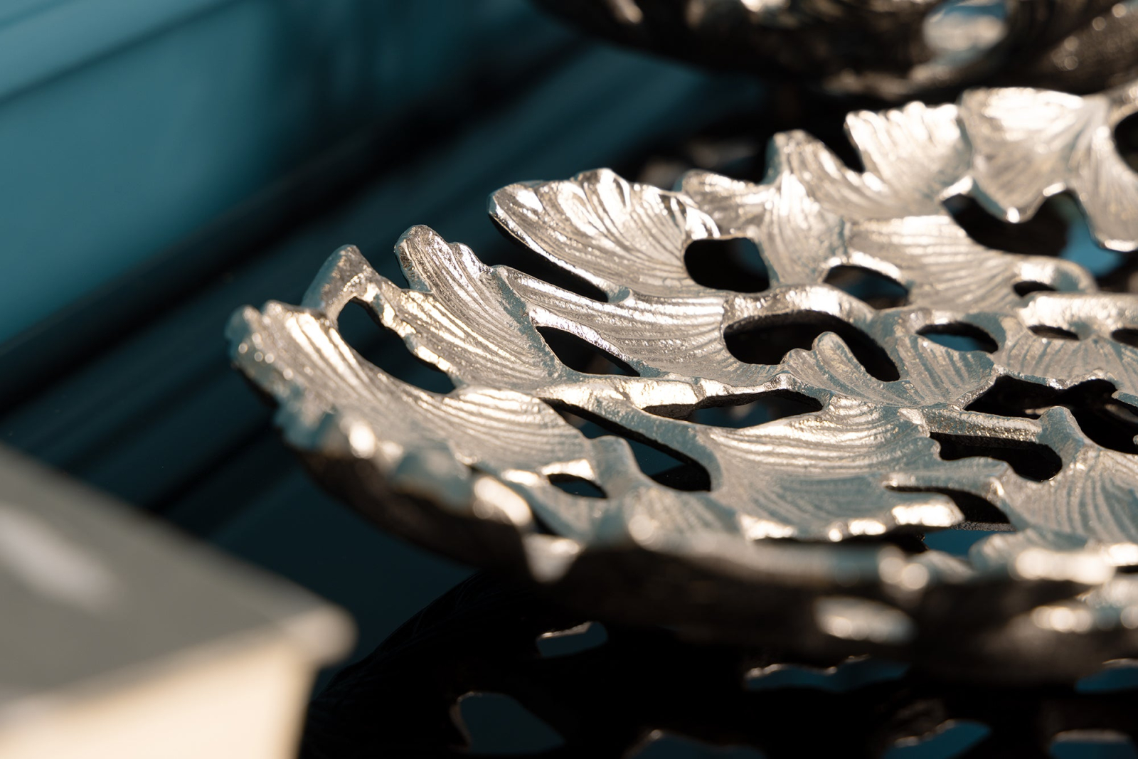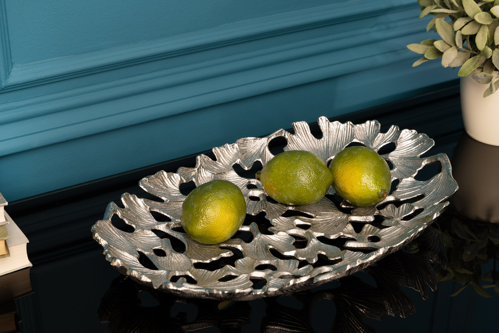 Bol decorativ GINKGO LEAVES 40x26cm argintiu