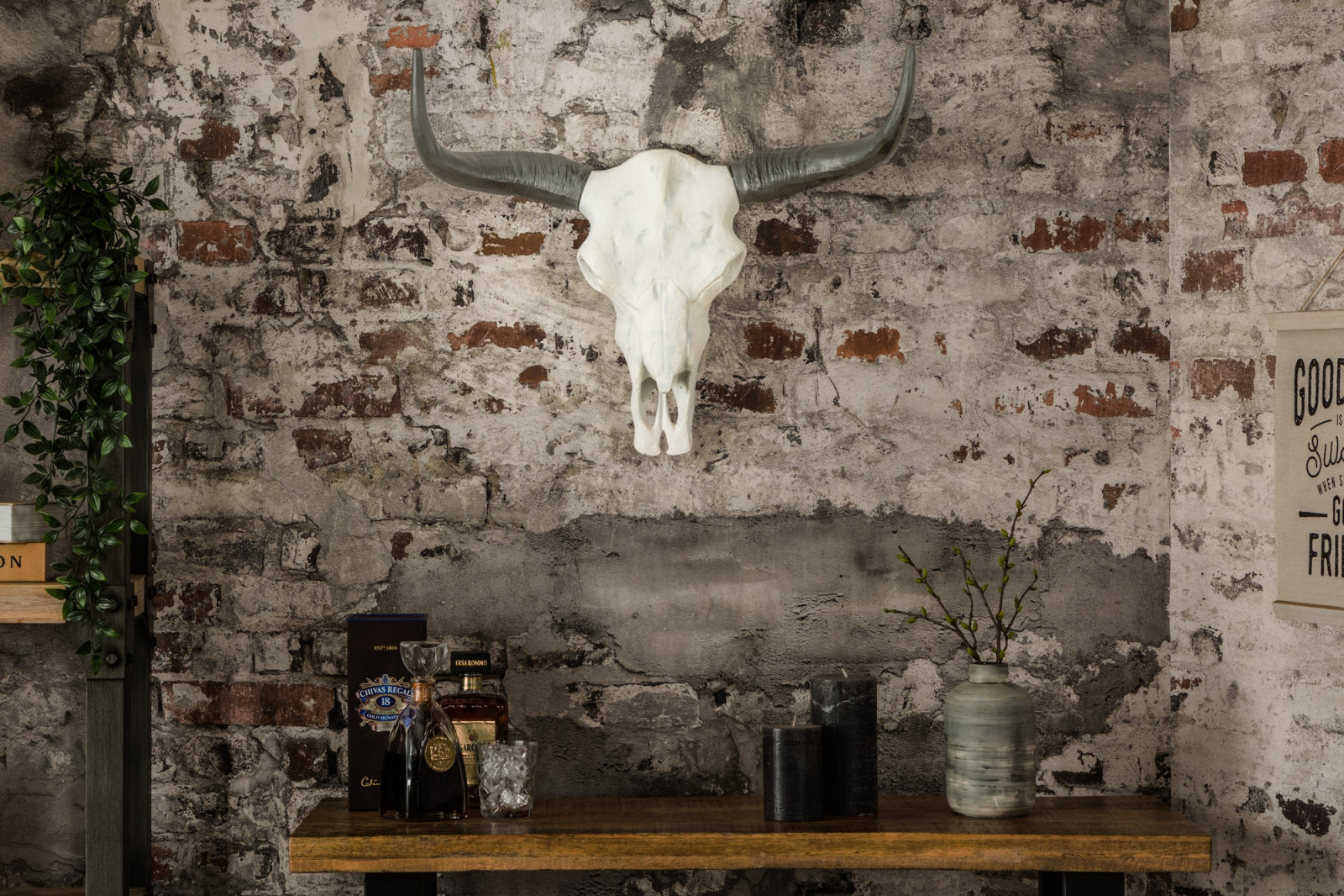 Decorațiune de perete craniu EL TORO 70 cm aluminiu alb negru