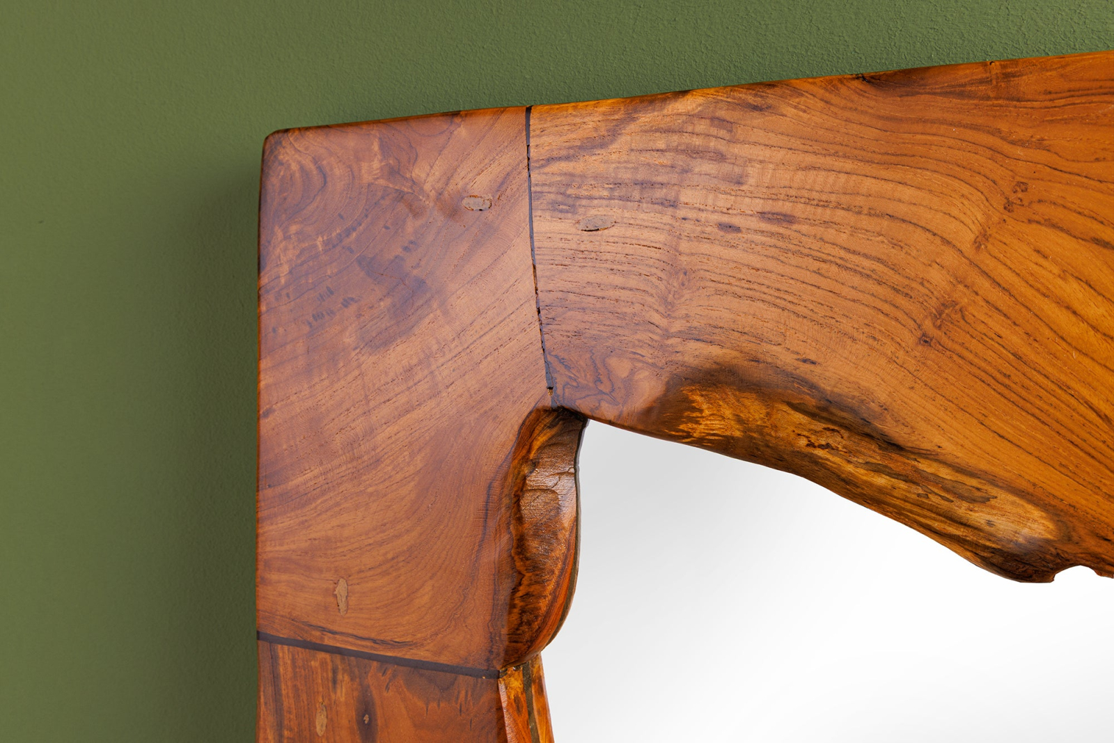 Oglindă de perete MOSAIC 90 cm din lemn de tec maro natural, realizată manual