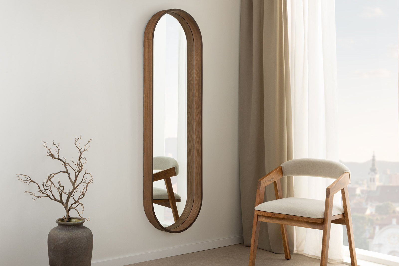 Oglindă de perete PORTRAIT 165 cm, furniruită cu lemn de nuc