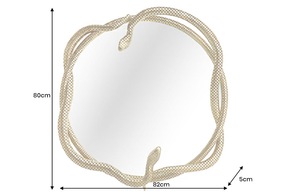 Oglindă de perete SNAKE XL 85 cm aurie cu element decorativ în formă de șarpe