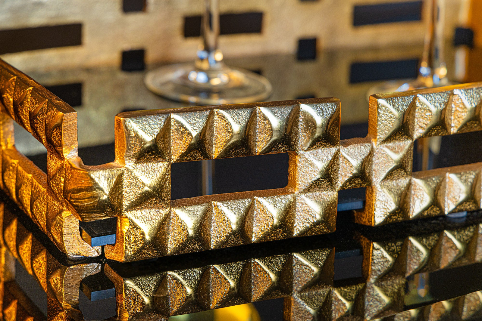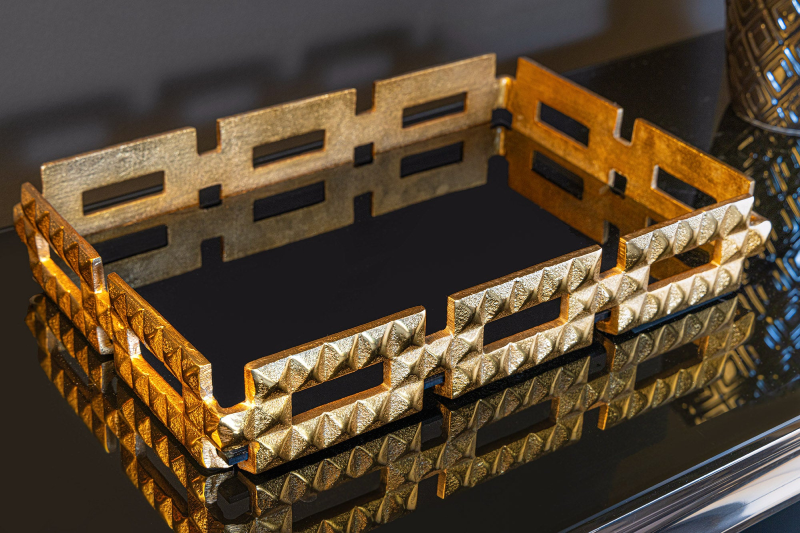 Tavă VARIATION 40 cm sticlă negru aluminiu auriu