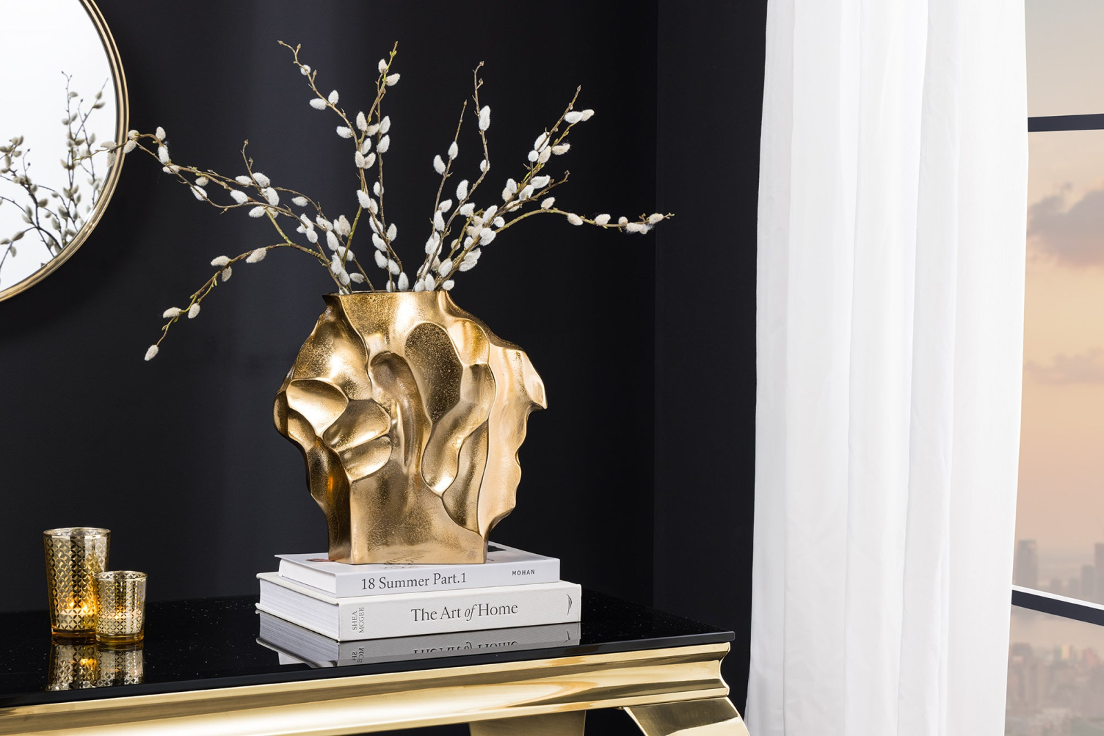 Vază LIQUID 25 cm cu efect de lovitură de ciocan, aurie