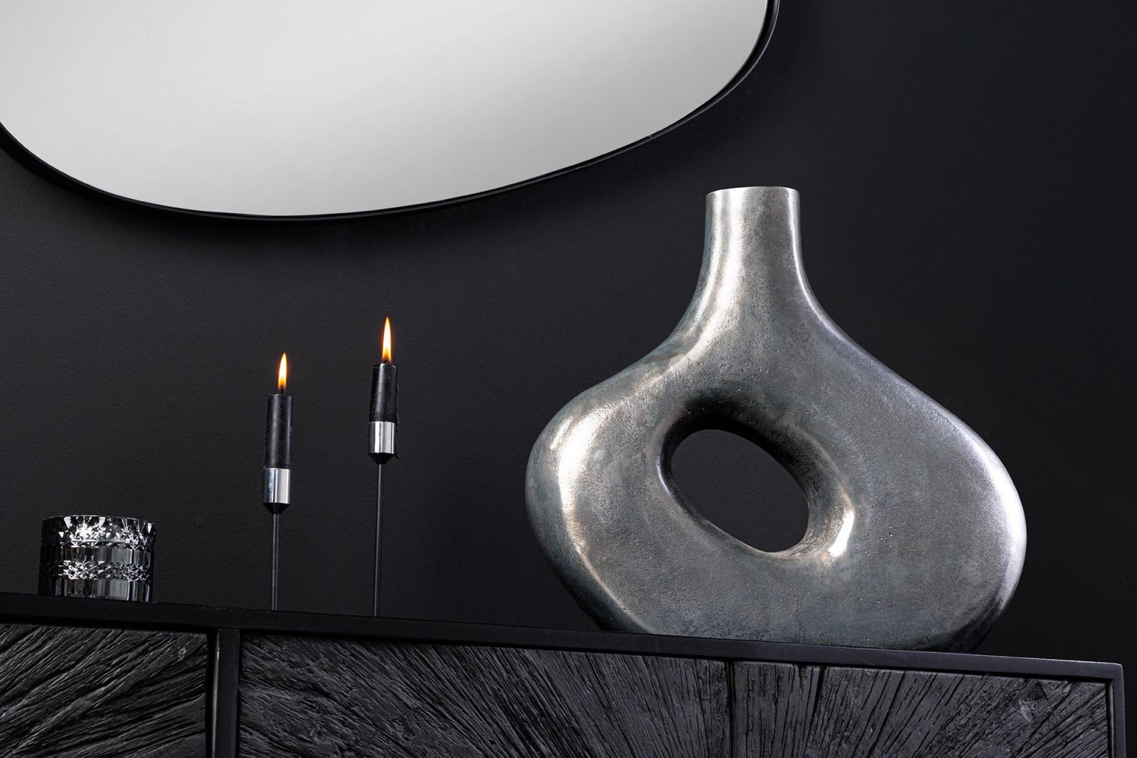 Vază RING 40 cm metal gri închis realizată manual