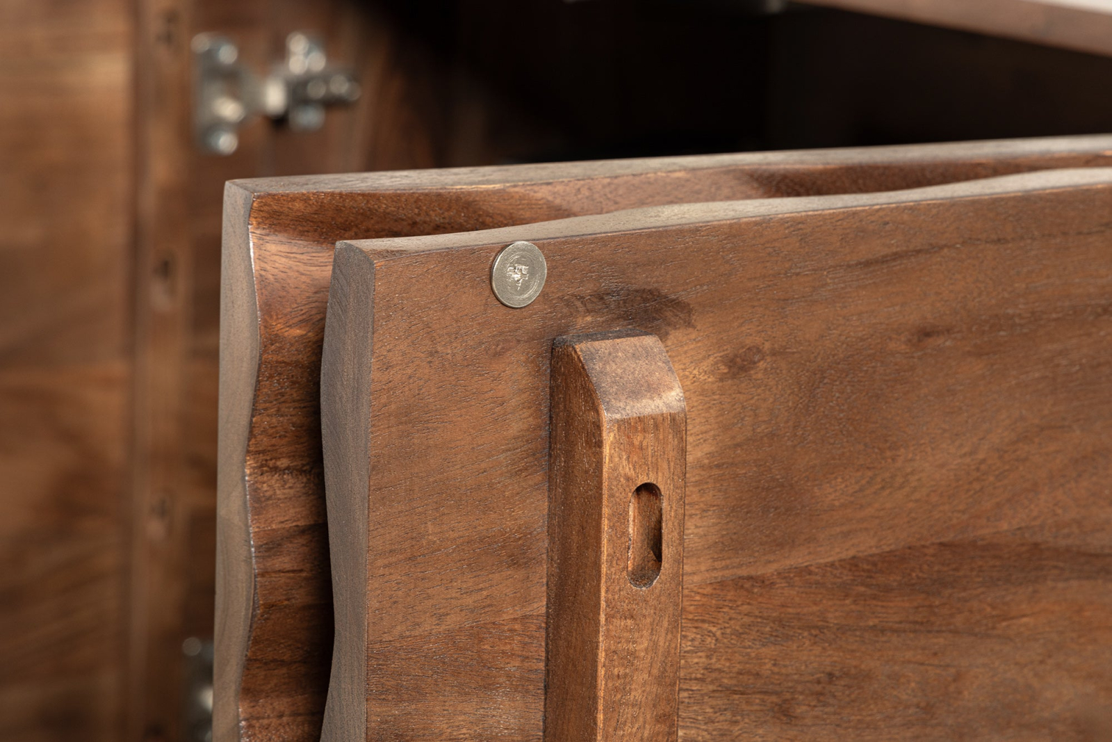 Dar nu doar exteriorul bufetului impresionează la prima vedere. Și interiorul are multe de oferit. În spatele ușilor lucrate artistic din lemn de salcâm lăcuit maro se află patru compartimente spațioase. Aici, vesela, cărțile sau jocurile vor găsi o soluție de depozitare elegantă și protejată. Sfatul nostru: Completează bufetul cu un bol cu fructe și o lampă de masă pentru a crea un concept de locuit armonios. Așteaptă-te la o piesă de mobilier elegantă!