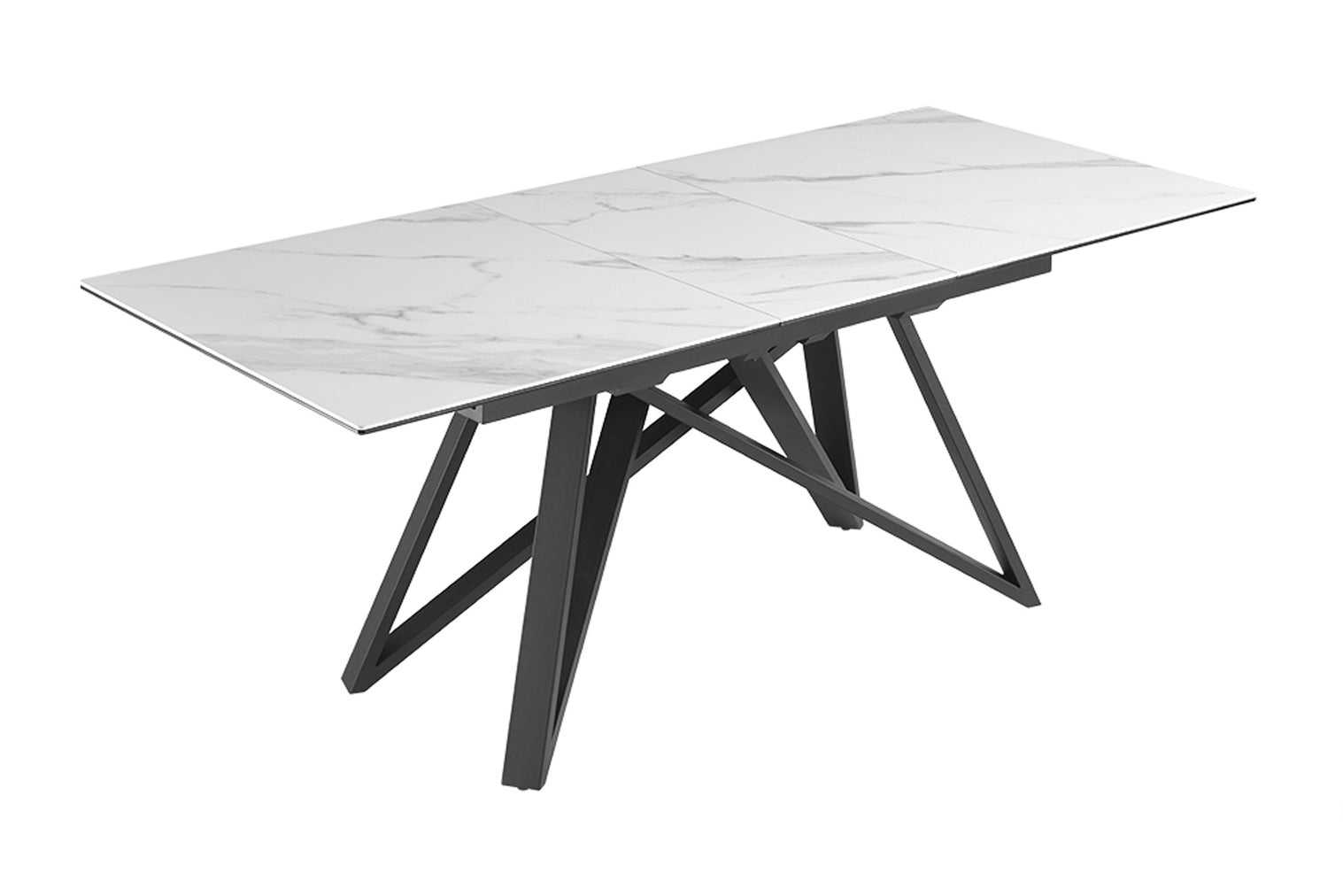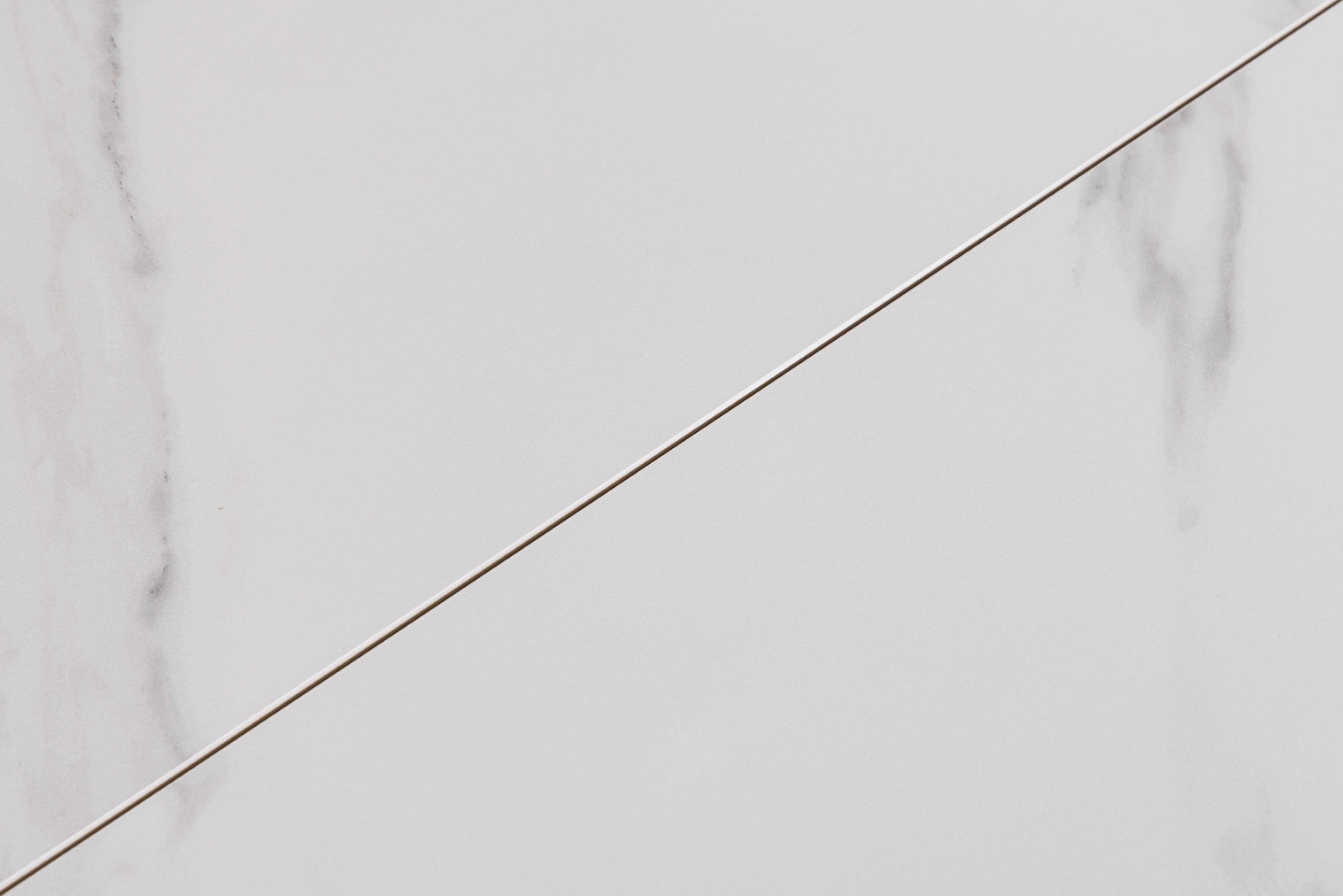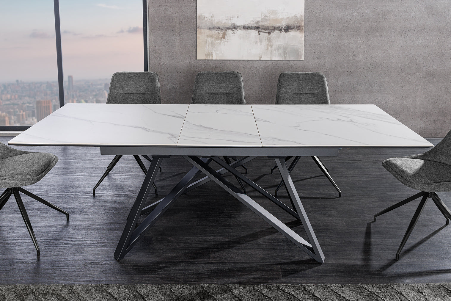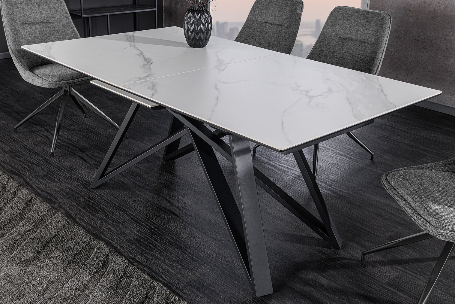 Masă de dining ATLAS 160-200cm extensibilă, aspect marmură, ceramică albă, sticlă securizată