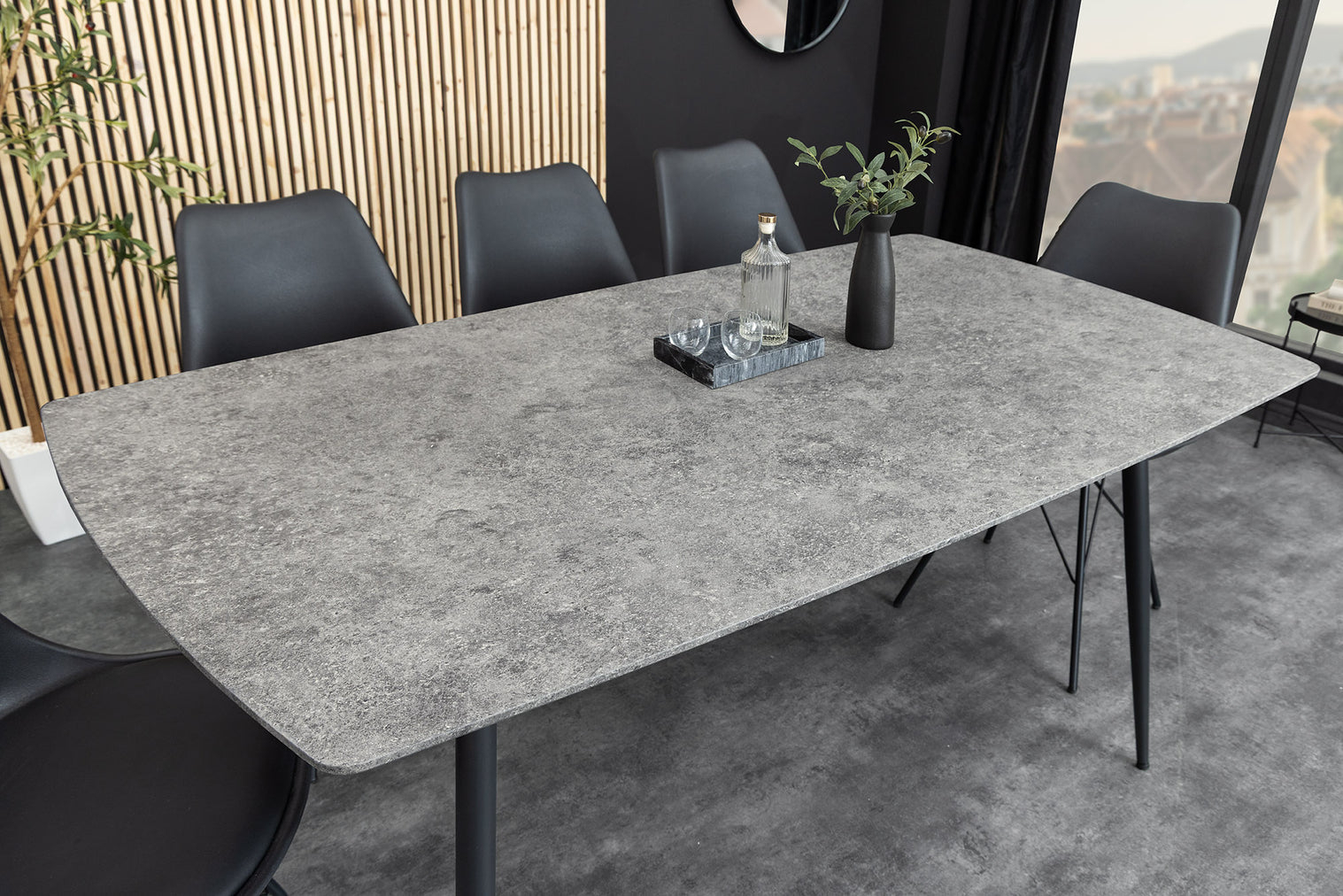 Masă de dining APARTMENT 140cm aspect piatră gri cu cadru metalic negru