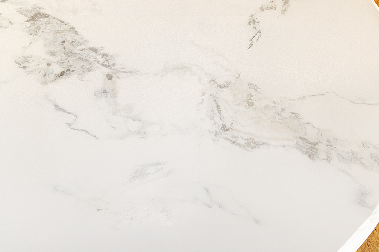 Masă de dining ELEGANCIA 130cm cadru rotund aspect marmură albă aurie