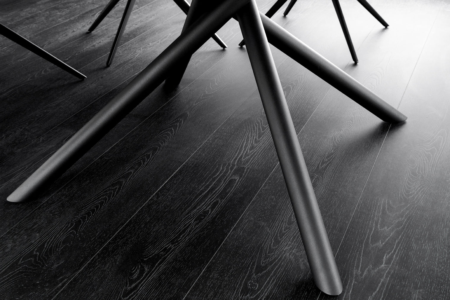 Masă de dining MIKADO 120-160cm rotundă extensibilă, aspect marmură, ceramică albă, sticlă securizată