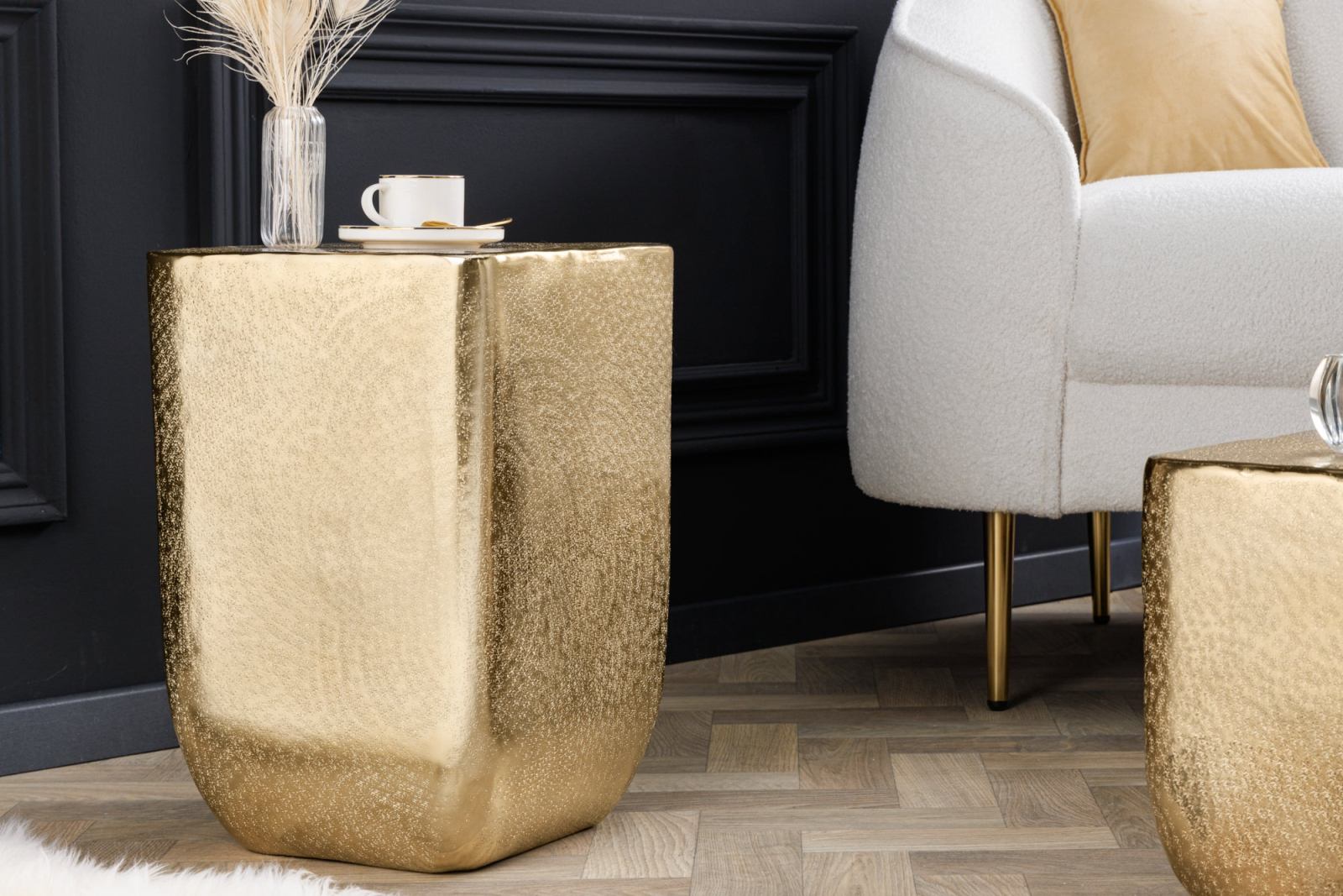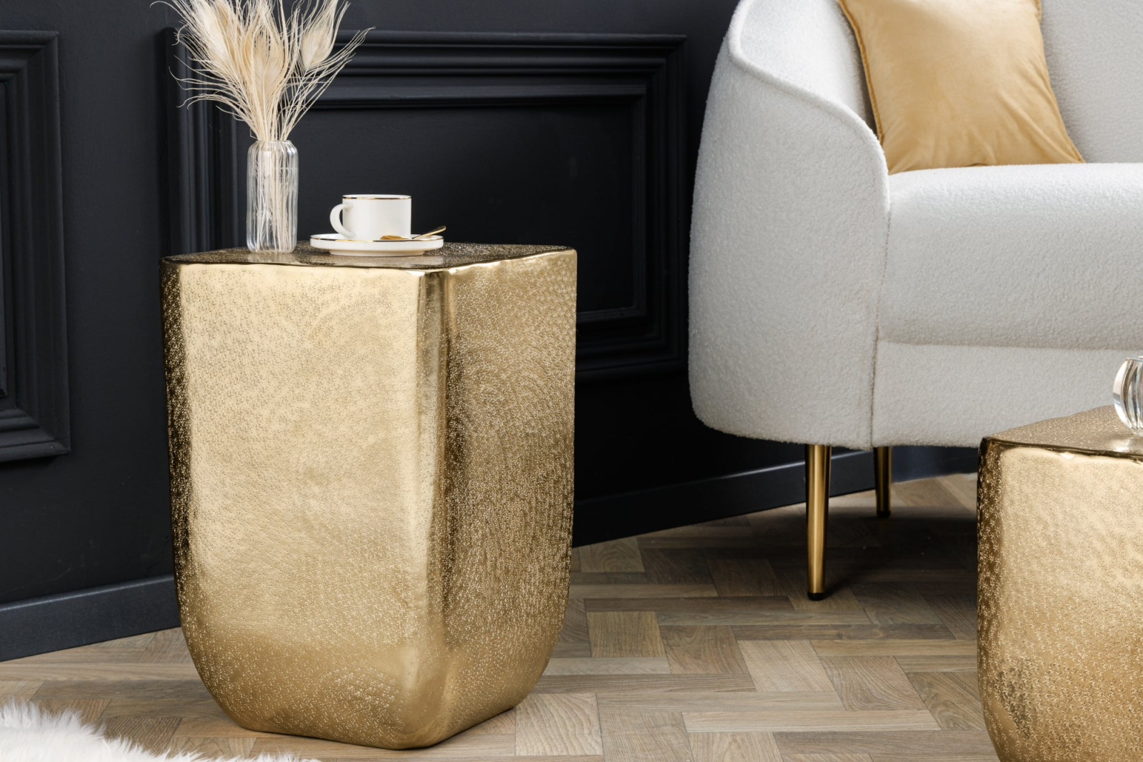 Masă laterală UNIT 45cm aurie cu efect de lovitură de ciocan